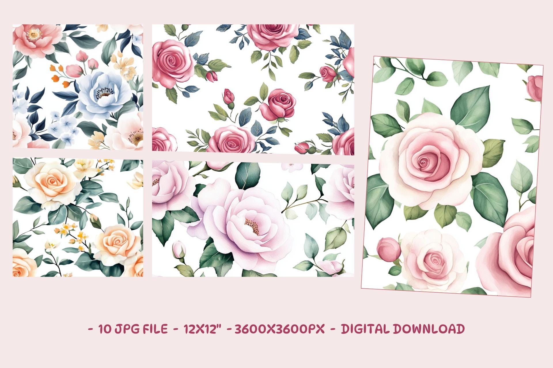 ✔ 10 Seamless Patterns – Pastel Roses and Peonies