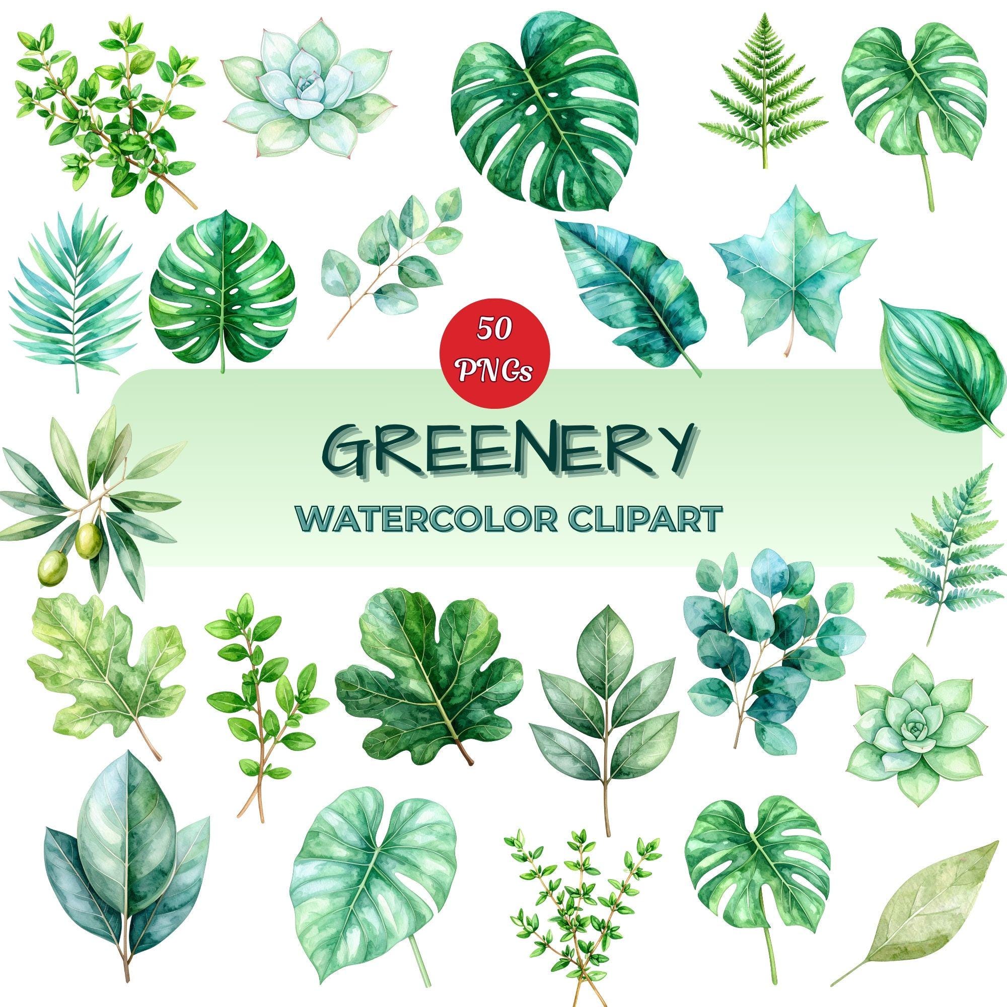 This greenery clipart set is ideal for anyone looking for high-quality watercolor greenery clipart PNGs for nature-inspired designs.