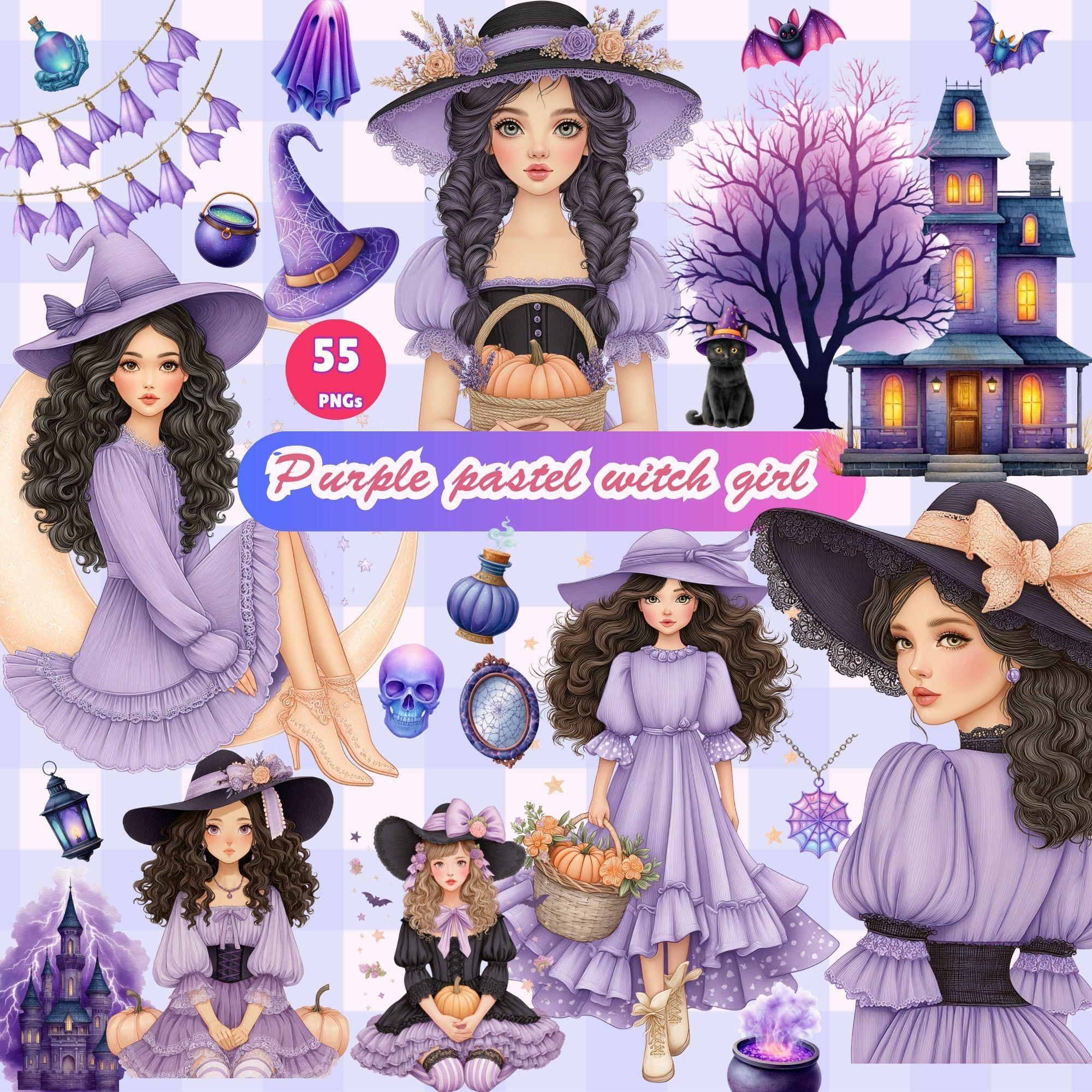 🧙♀️✨ Bring some magic into your creations with this Purple Pastel Witch Girl Clipart Bundle ✨🧙♀️