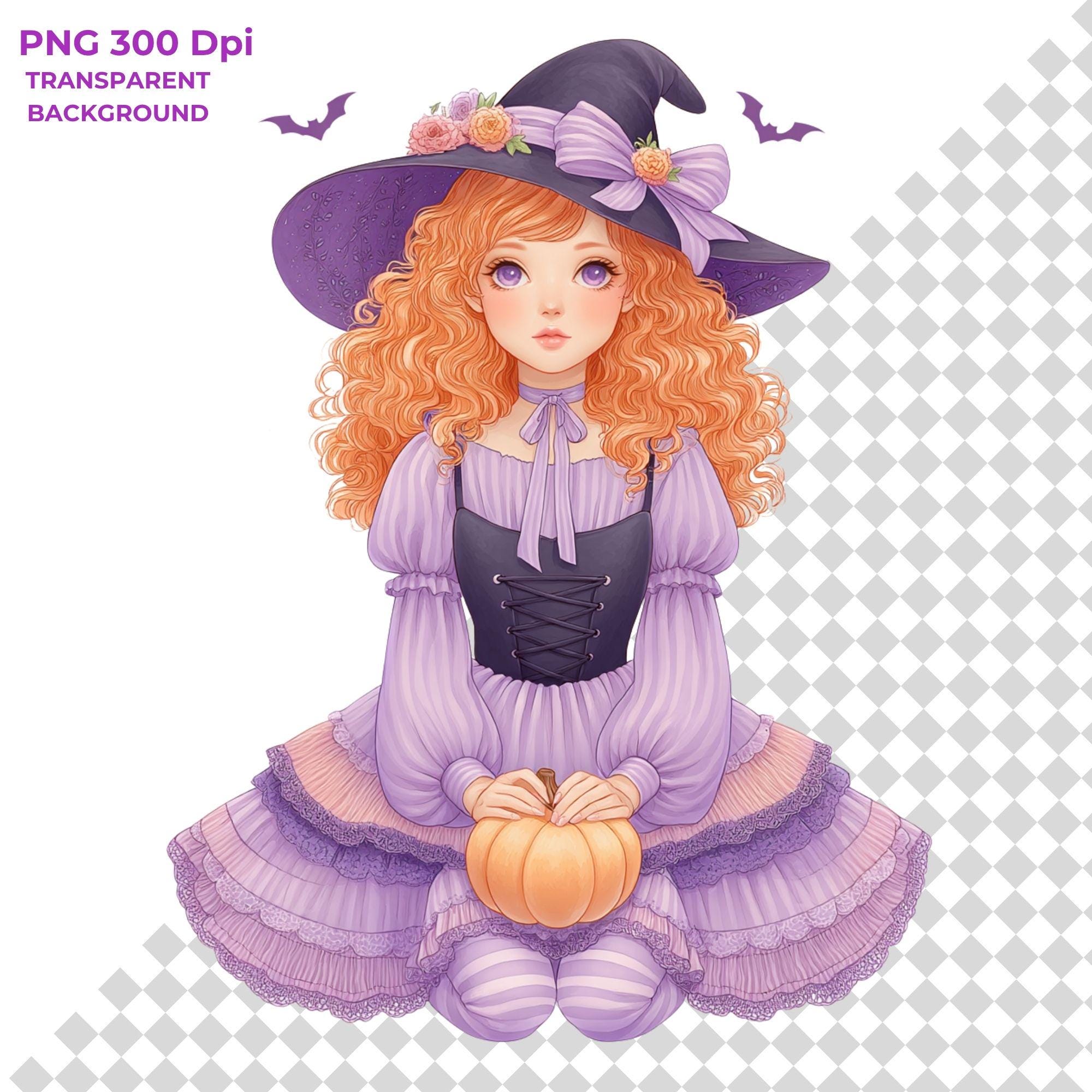 Purple pastel witch clipart, cute witch clipart, Halloween witch clipart for planner and sublimation