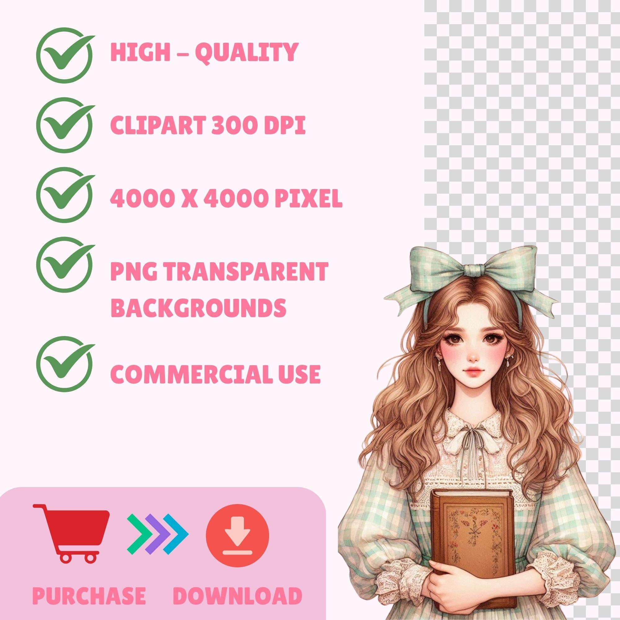 Download this charming Pastel Reading Girl Clipart set today and bring gentle vintage beauty to your next creative project.