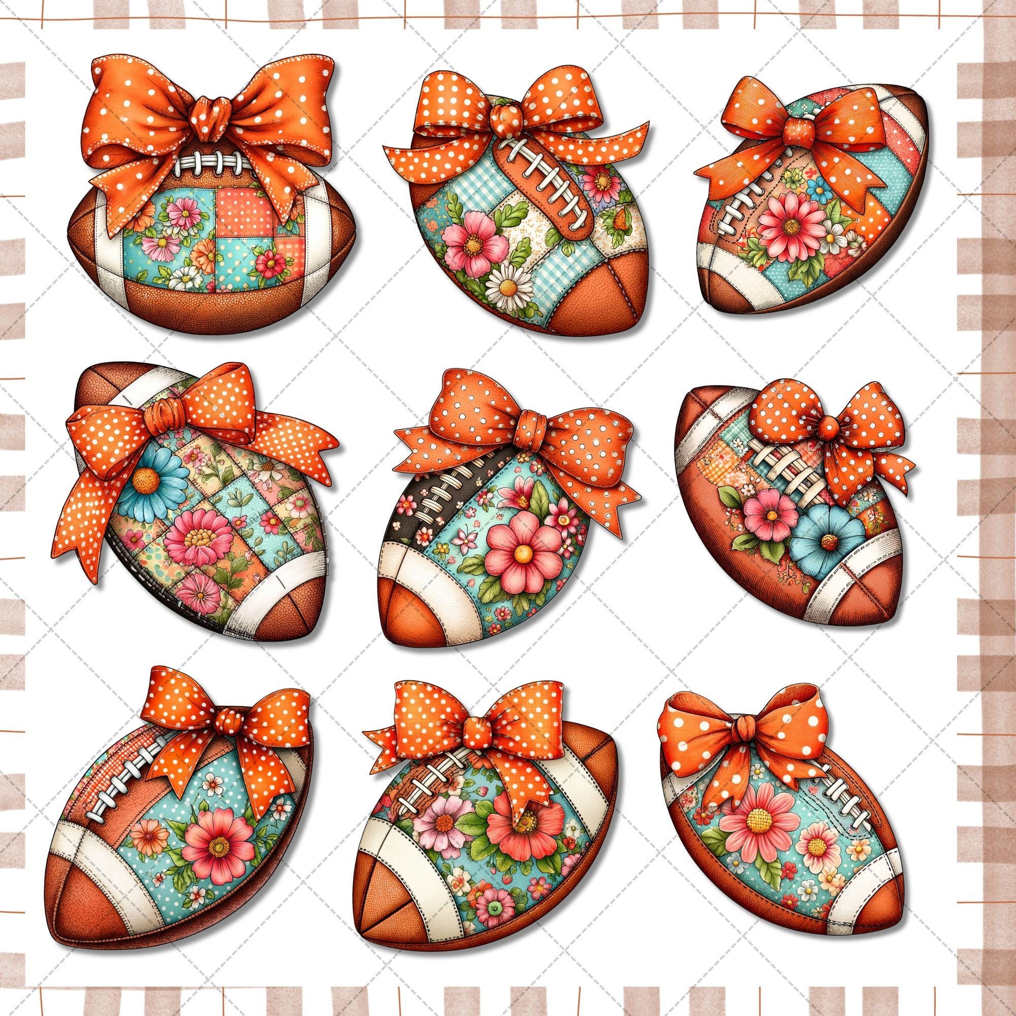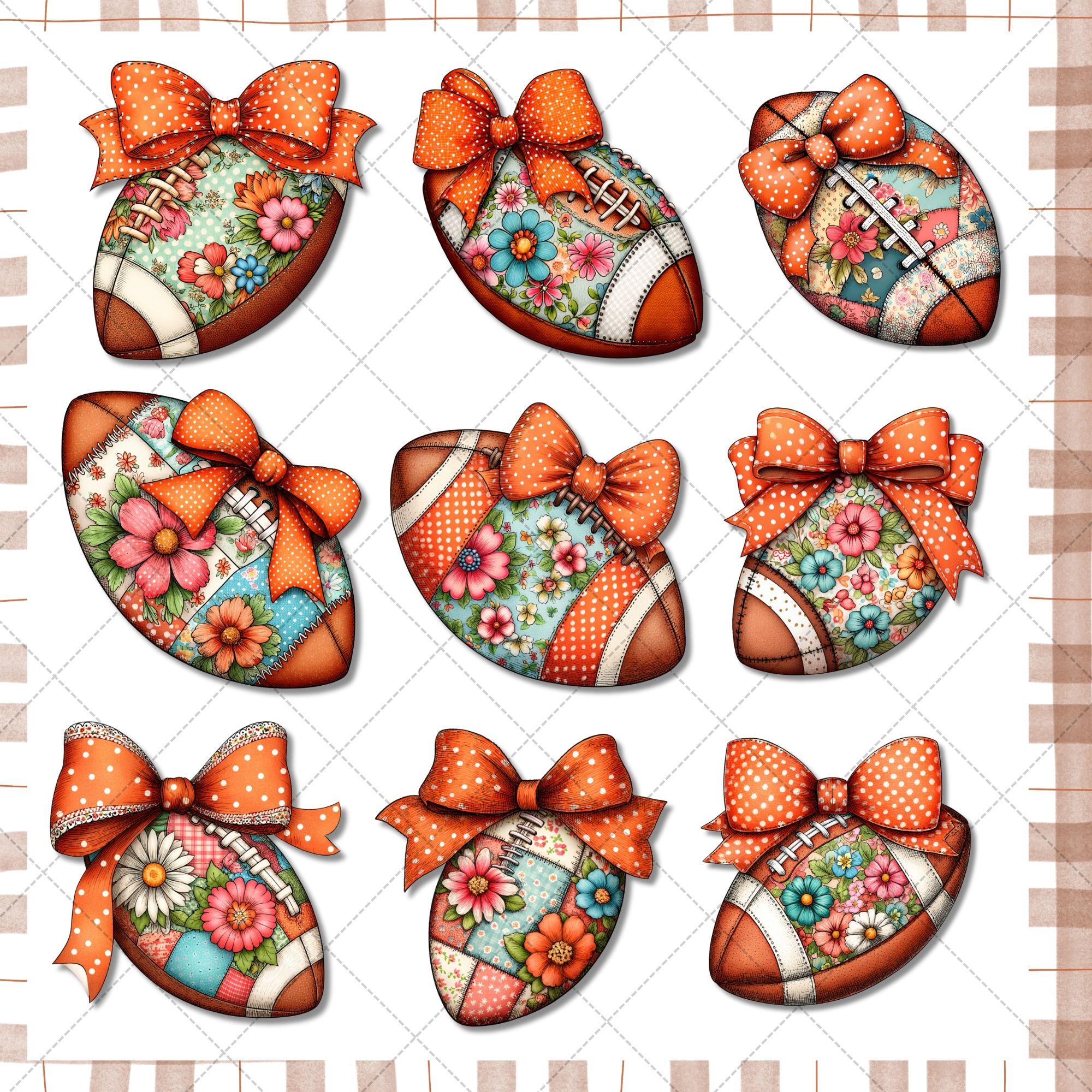 Football Clipart, Watercolor Football PNG, Floral Football Clipart, Patchwork Football Clipart, Cute Football Digital Download, Sports Party Clipart, Football Bow PNG