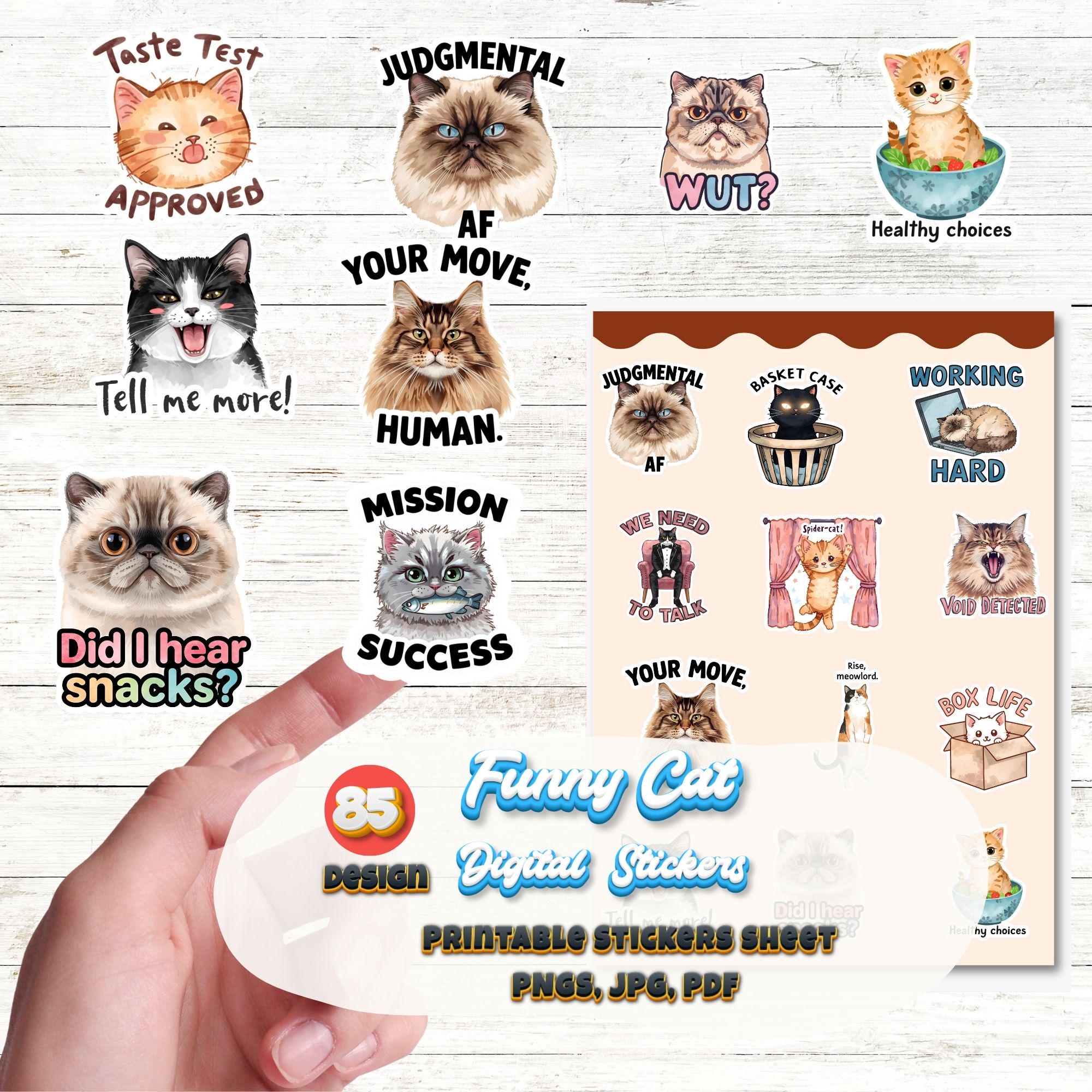 These Funny Cat Stickers in semi realistic style are ideal as printable PNG stickers for journals, scrapbooks, digital use, and more!