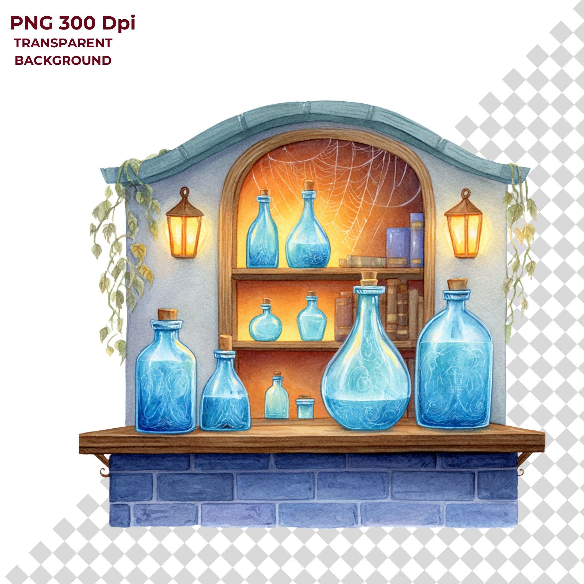 Shops, pumpkins, witch hats, potion shelves, characters, signs
