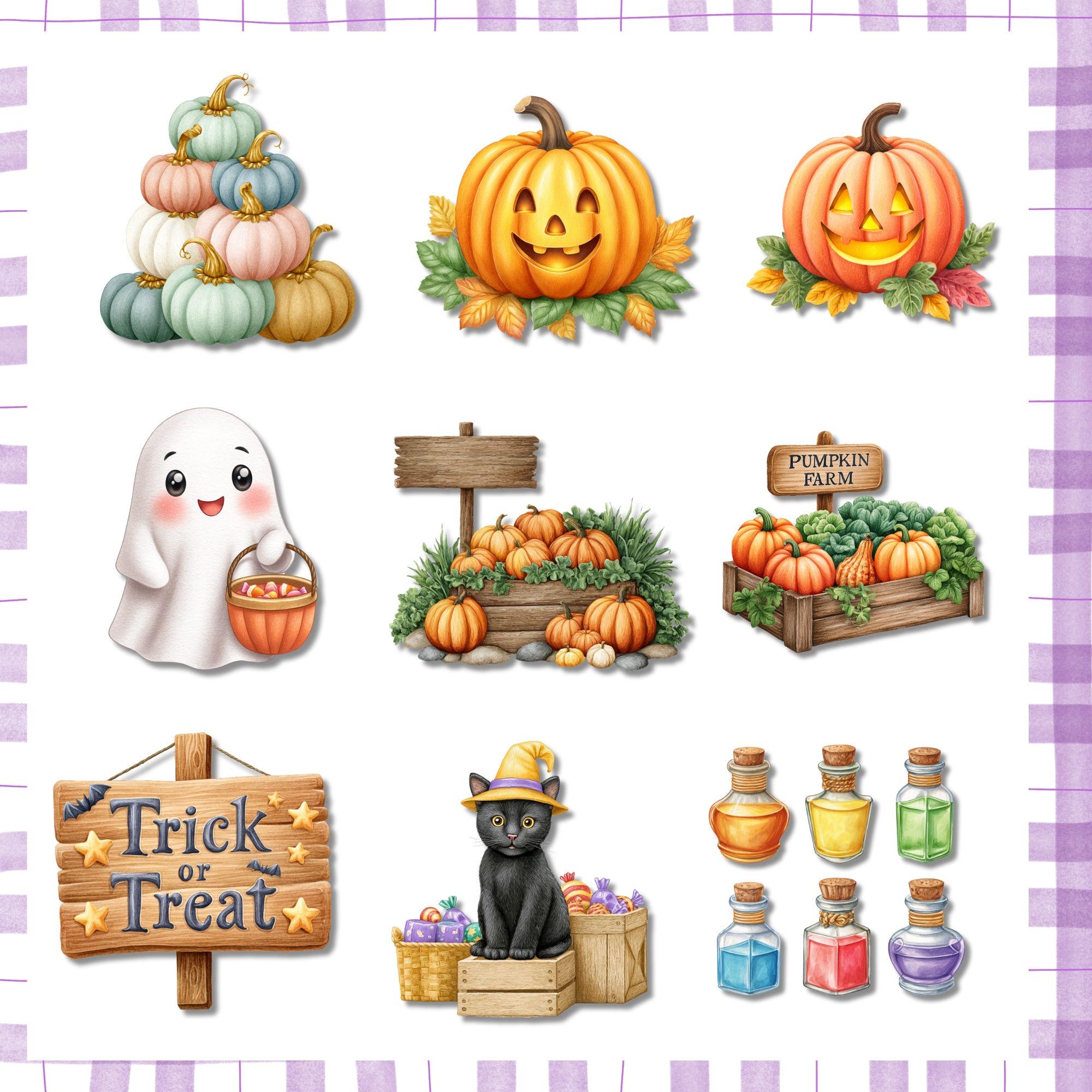 Bring your Halloween creations to life with this Halloween Village Shops Clipart Bundle! watercolor Halloween shops, pumpkin houses, and spooky cottages, this set is perfect for crafters, designers, and small business owners looking for high-quality, whimsical digital art.