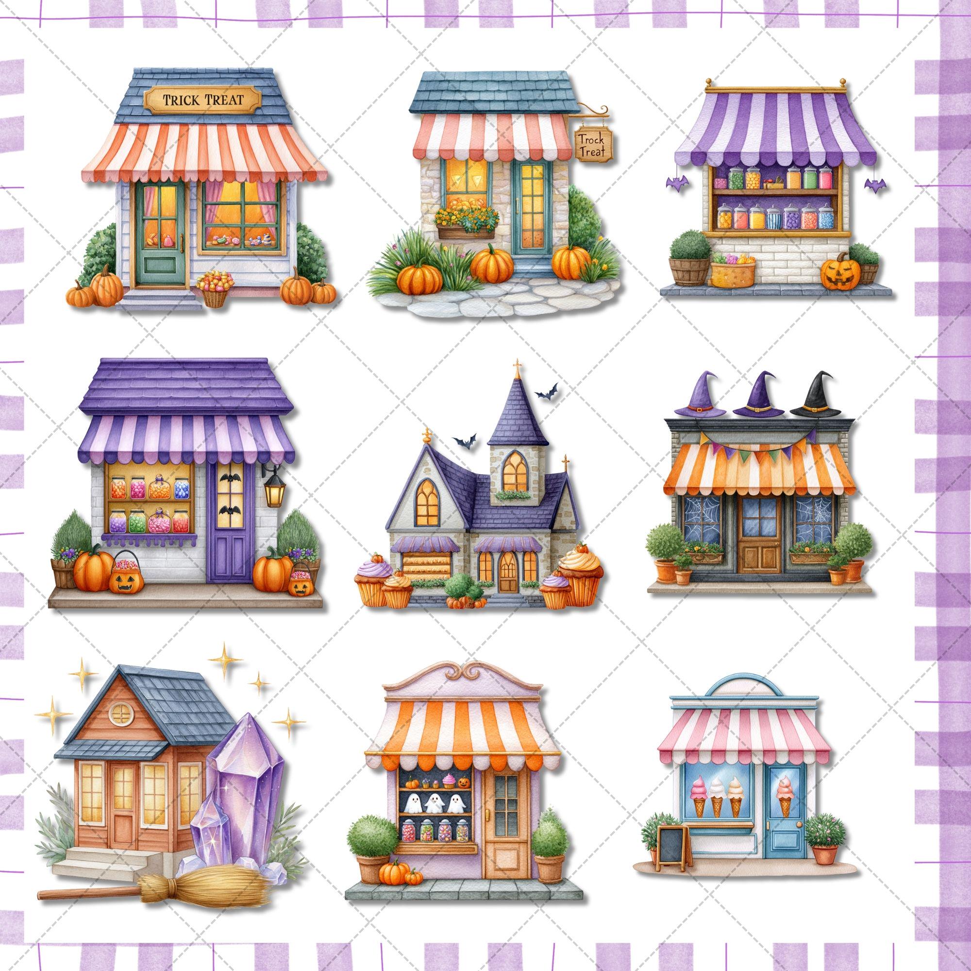Add this Halloween Village Shops Clipart set to your cart and start designing!