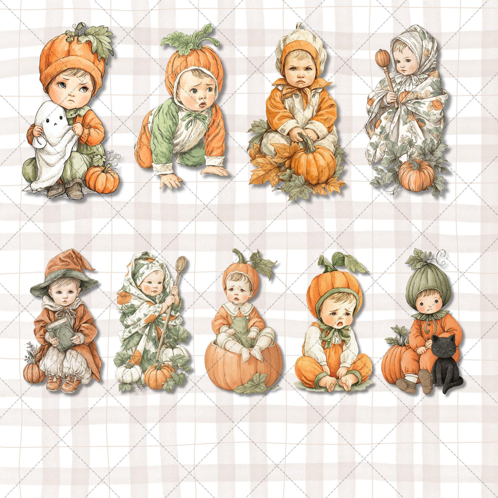 25 unique Vintage Little Baby Pumpkin Halloween Clipart PNGs