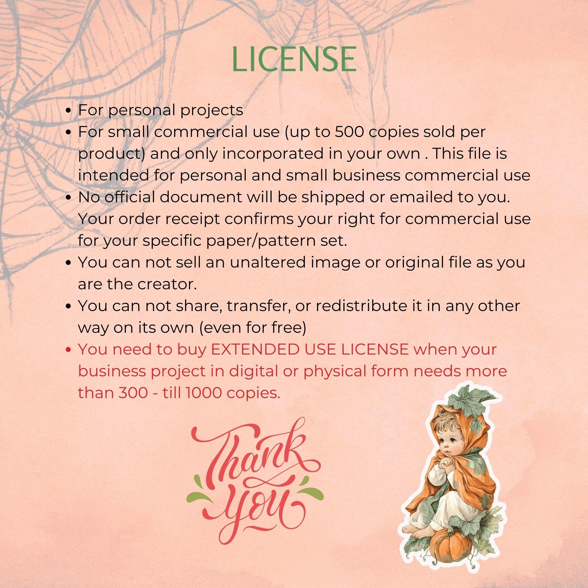Personal and small commercial use (up to 500 copies).