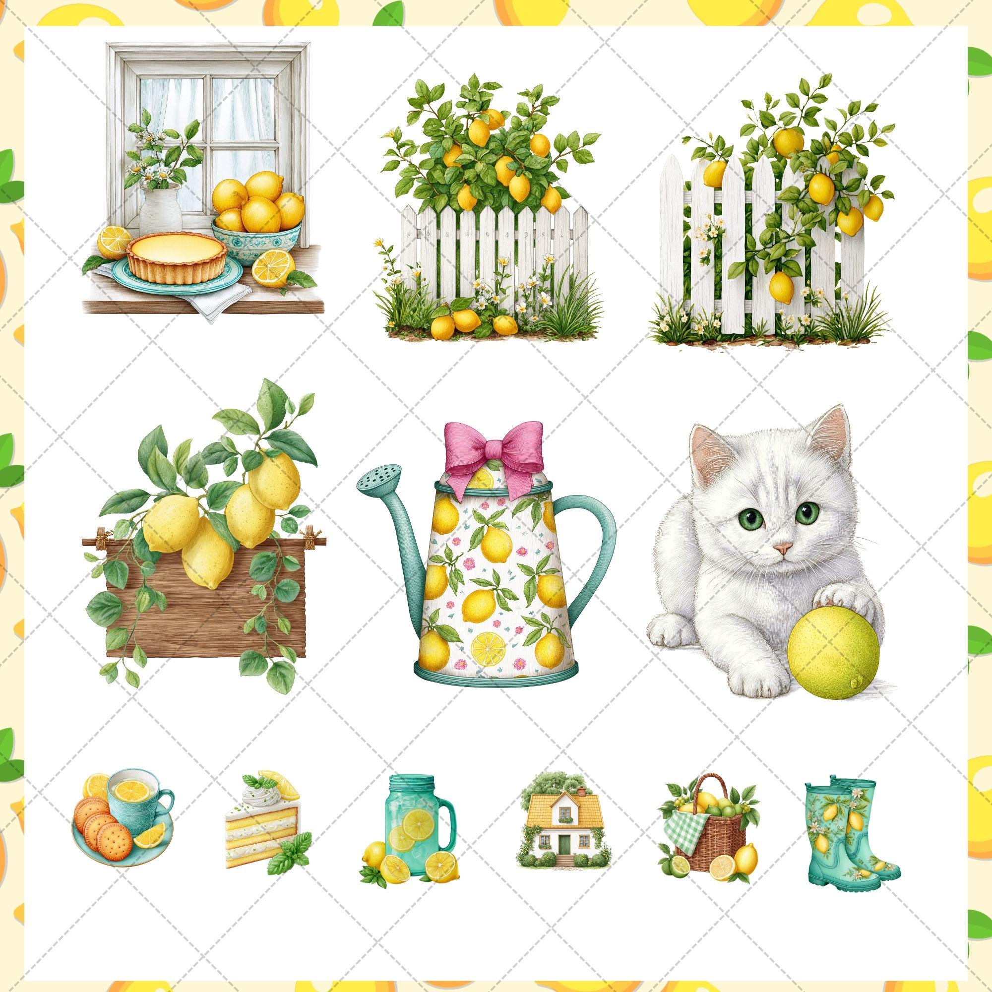 Brighten your creative projects with this Watercolor Lemon Garden Clipart collection. Hand-painted in delicate watercolor style, this set captures charming cottages, citrus gardens, fresh lemons, cozy kitchens, cute animals, and cottagecore fashion girls. Perfect for DIY crafts, branding, and digital design!