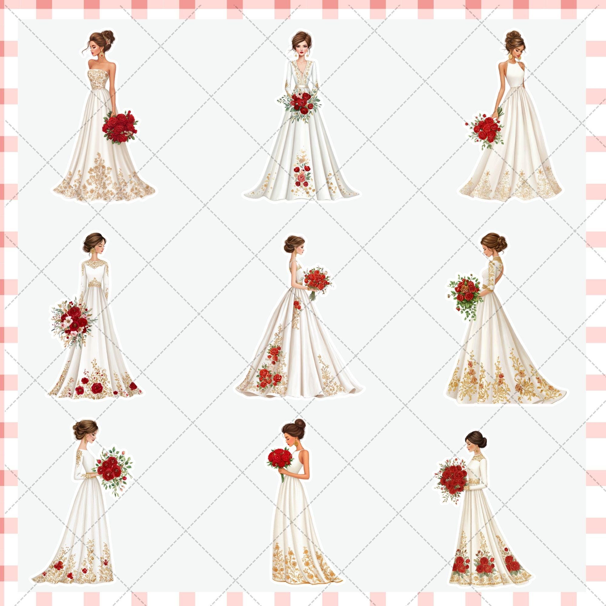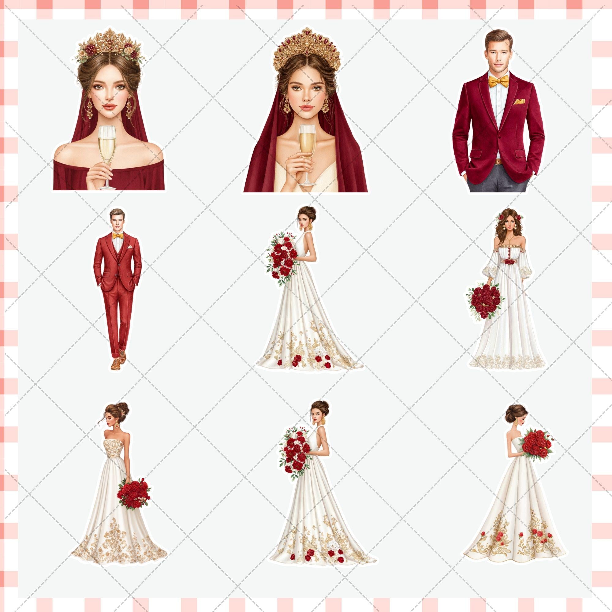 Bring elegance to your wedding projects with this Wedding Clipart Red and Gold set – a luxury watercolor wedding clipart collection featuring romantic brides, grooms, dresses, flowers, décor, and accessories. Perfect for designers, small businesses, and DIY brides, this wedding clipart PNG pack is crafted for timeless, romantic designs.