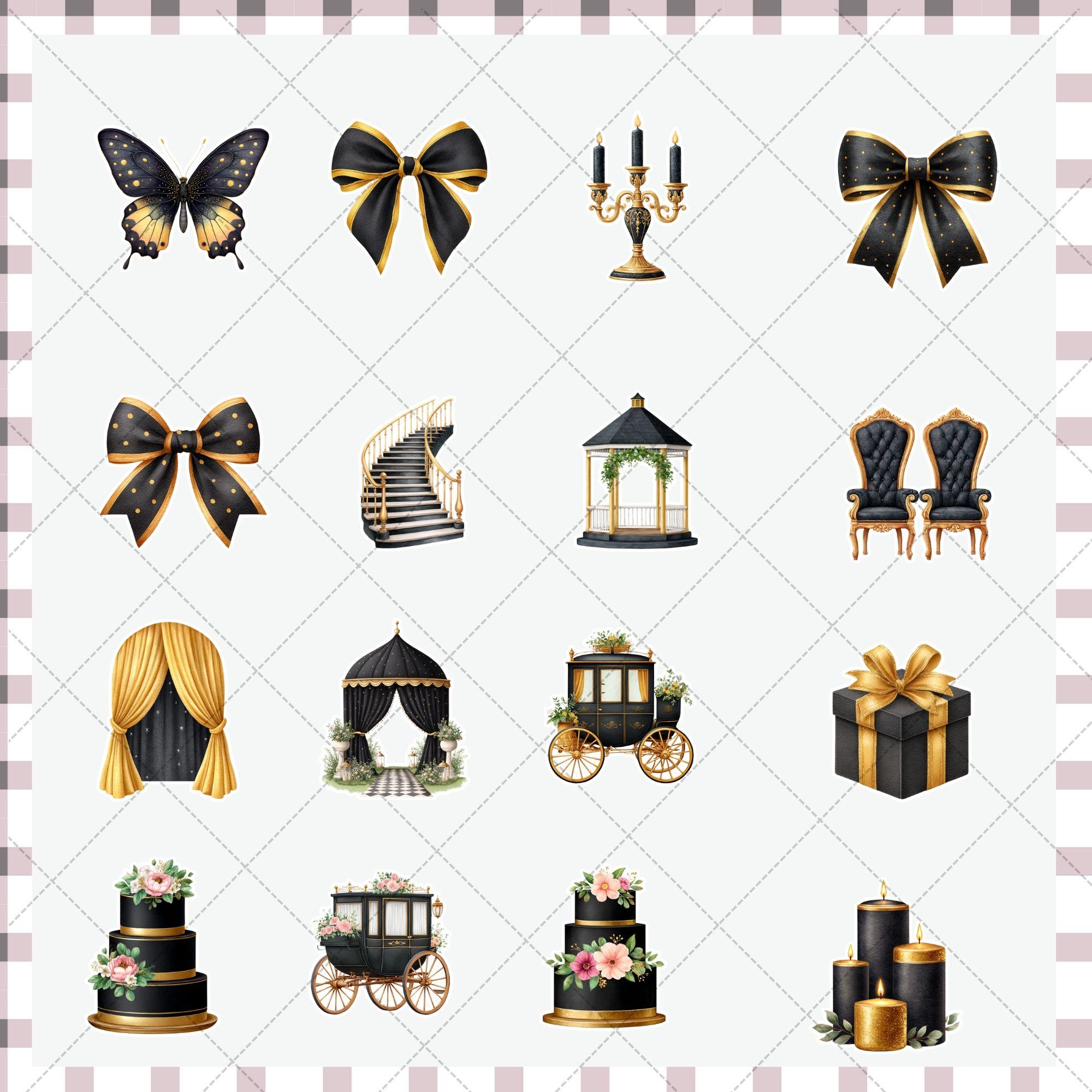 Bring luxury and timeless charm to your projects with this Wedding Clipart Black and Gold PNG set. Perfect for elegant, romantic designs — download instantly and start creating today!