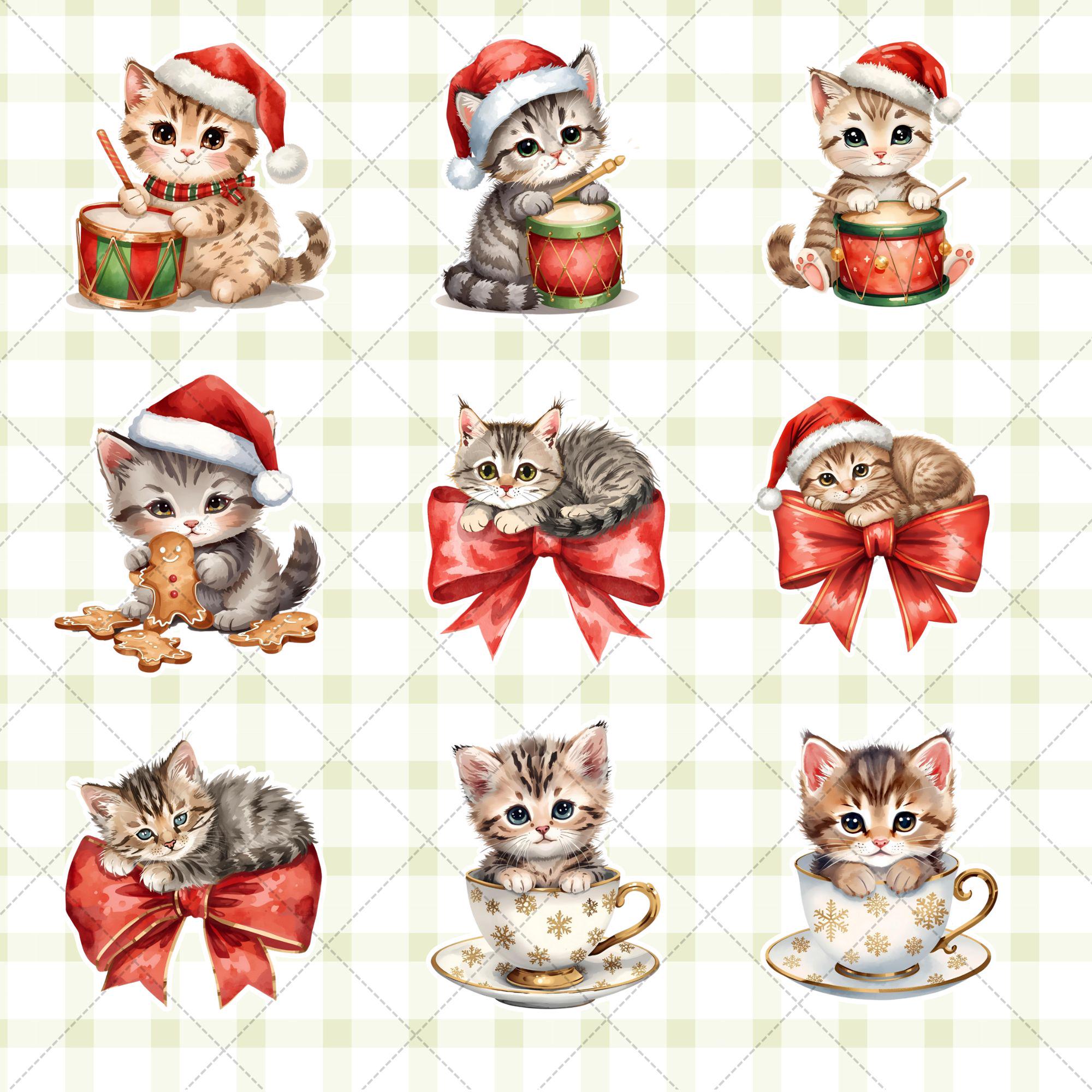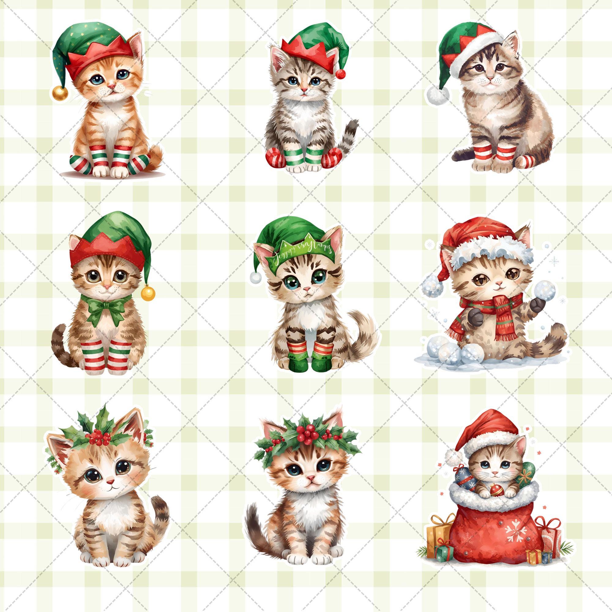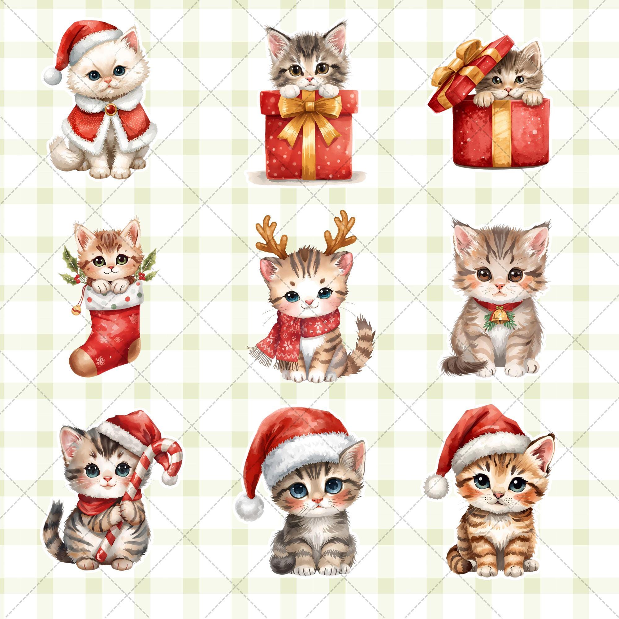 150 high-quality Watercolor Christmas Kitten Clipart PNG files