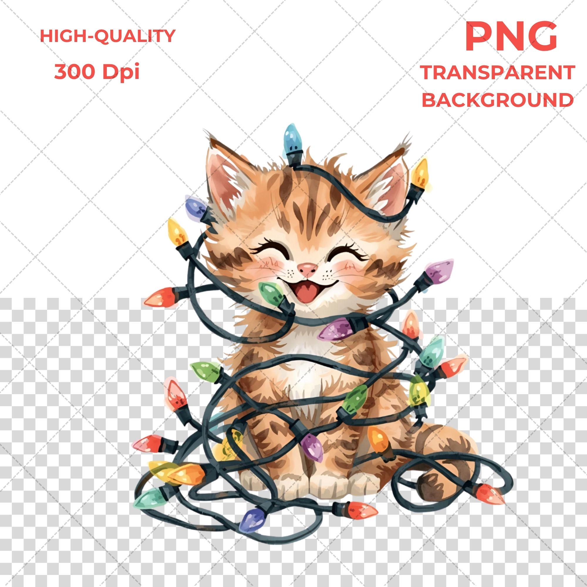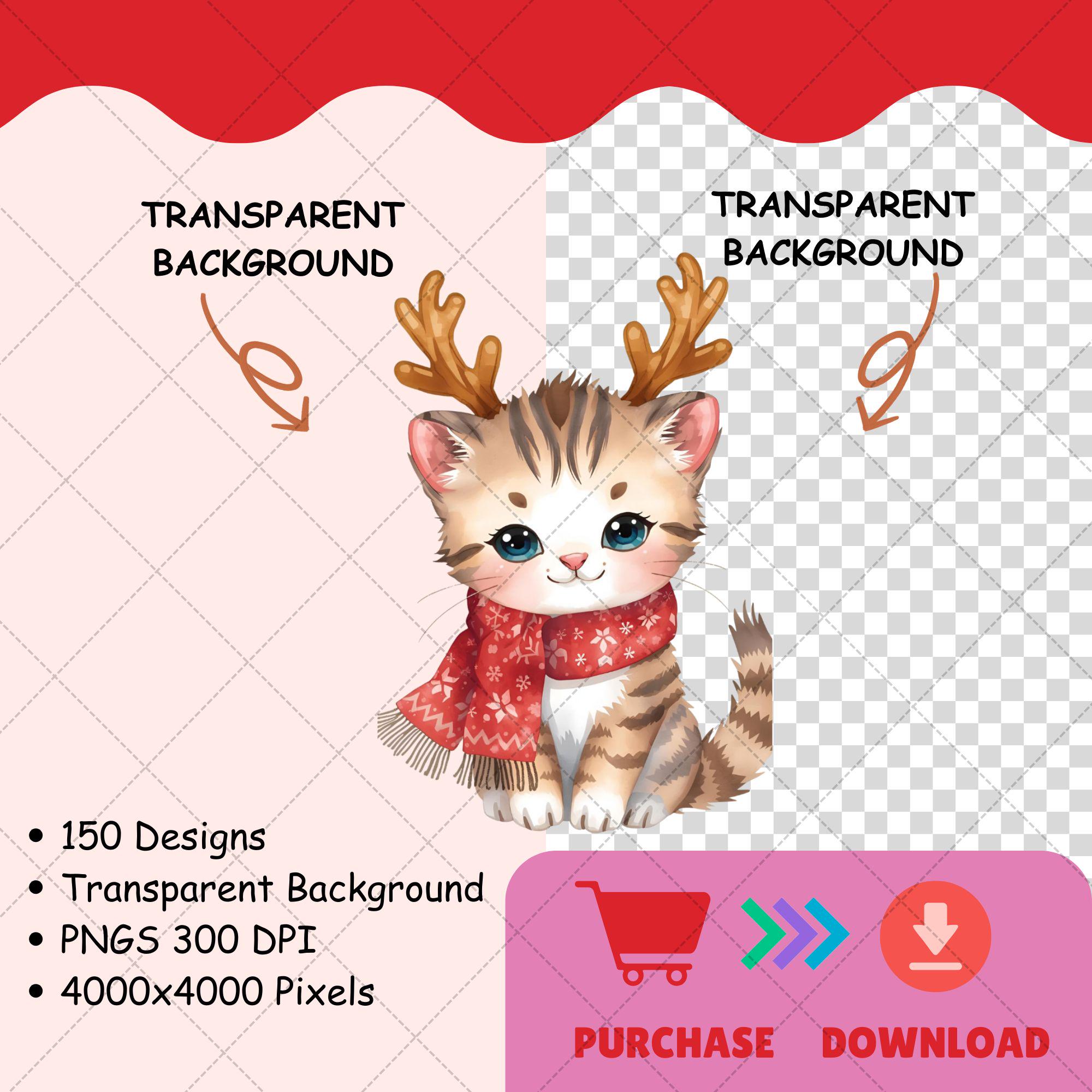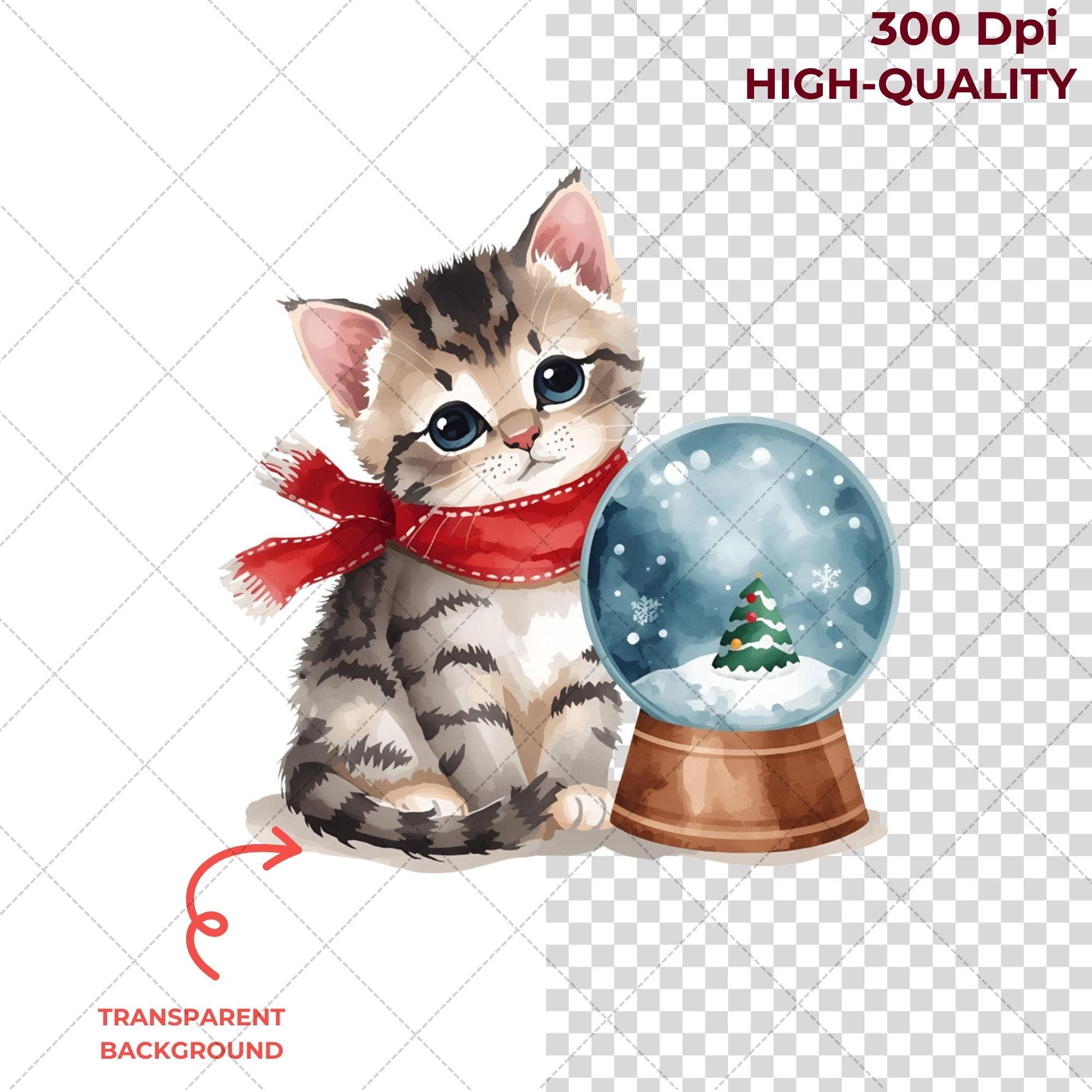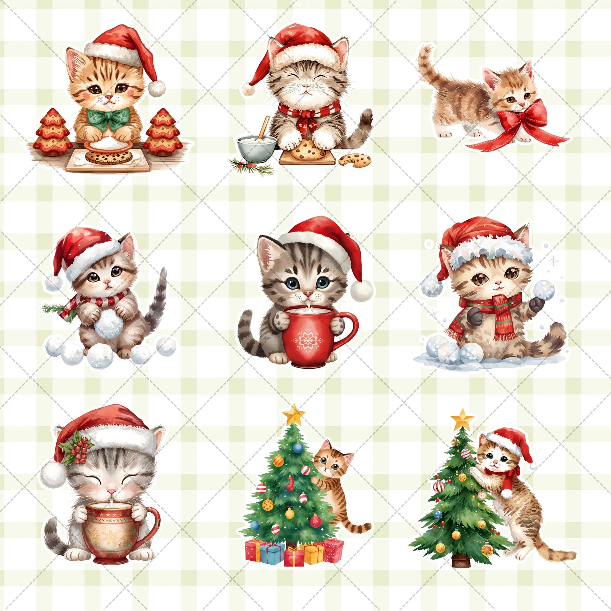 150 high-quality Watercolor Christmas Kitten Clipart PNG files