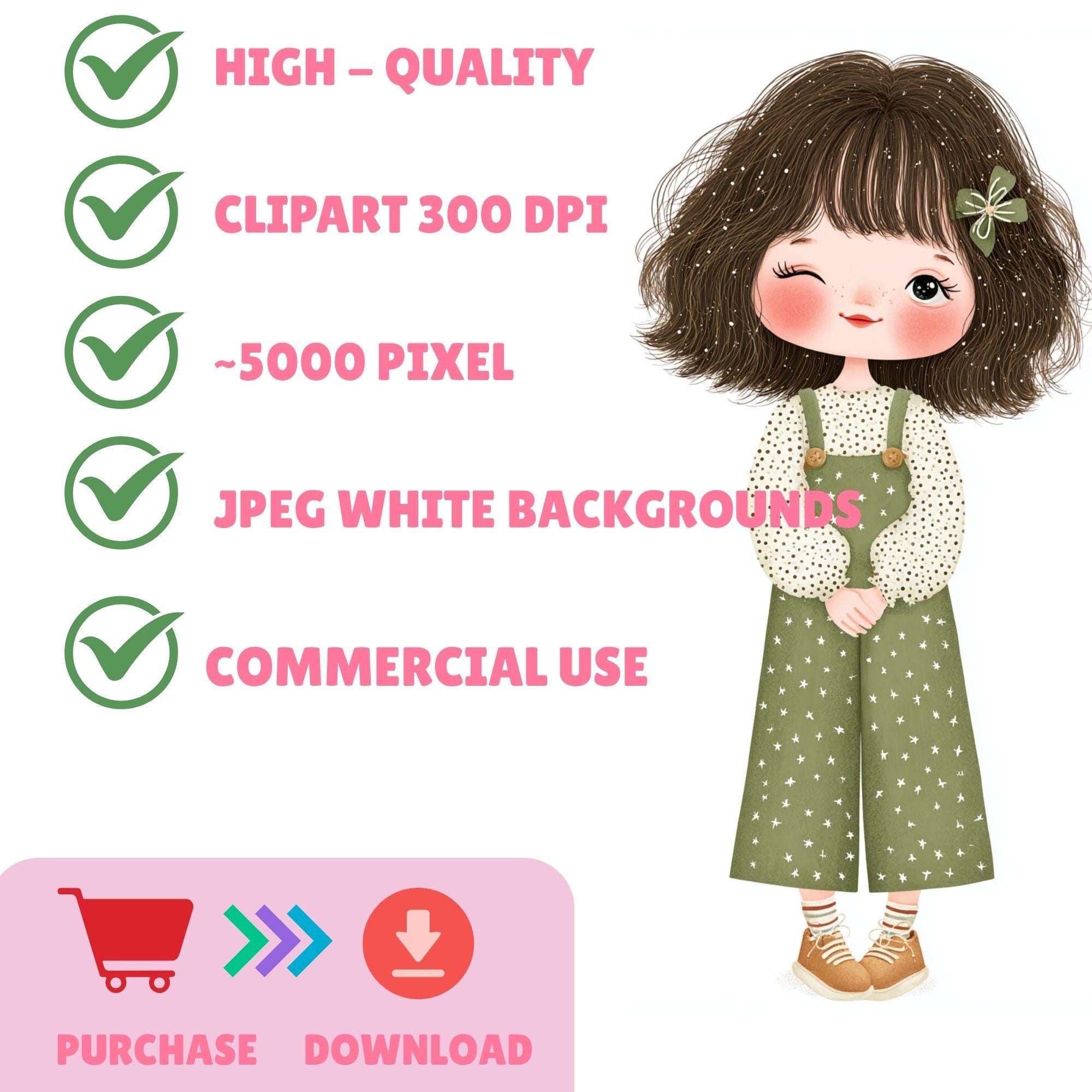 This Boho Green Cozy Girl Clipart collection features 36 hand-painted watercolor girls in adorable bohemian outfits — cozy cardigans, floral dresses, and soft green tones that bring a natural aesthetic charm to your designs. Each file is high-quality, print-ready, and perfect for your commercial projects.