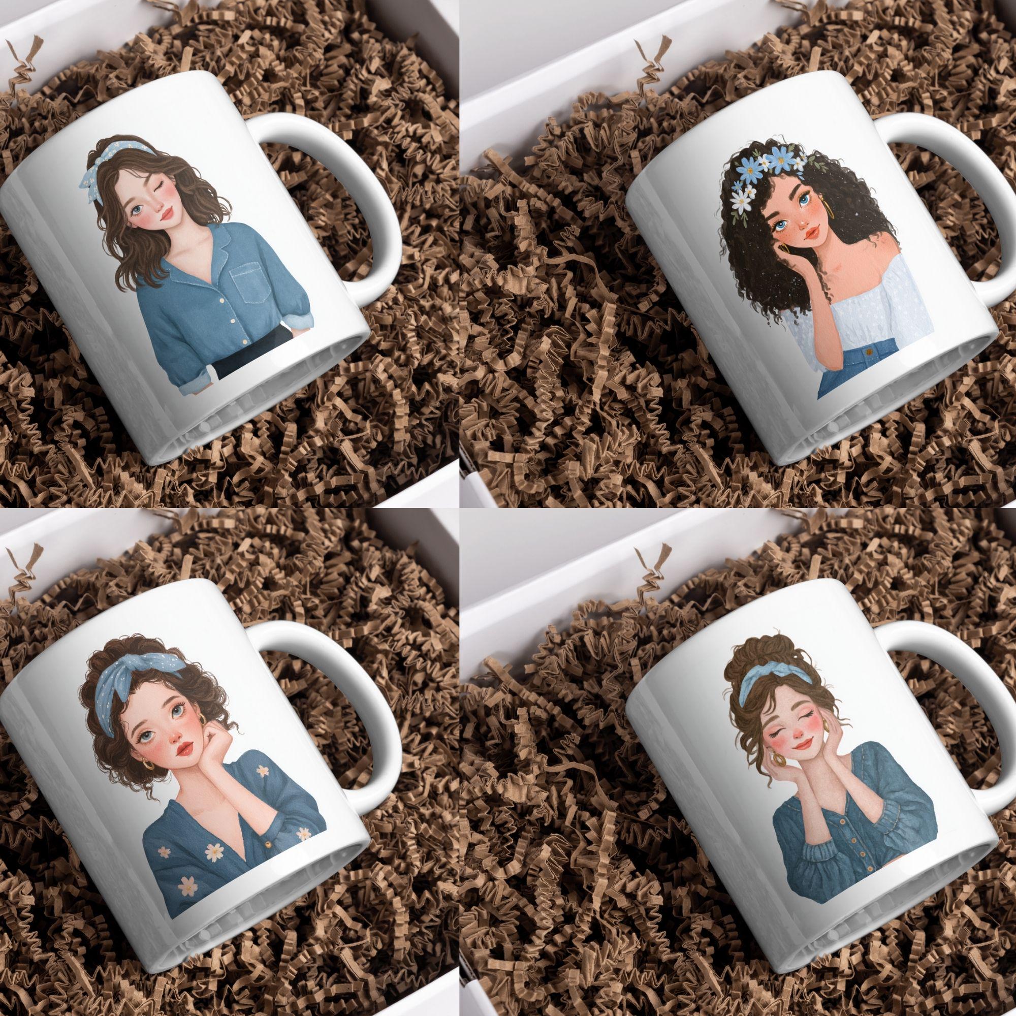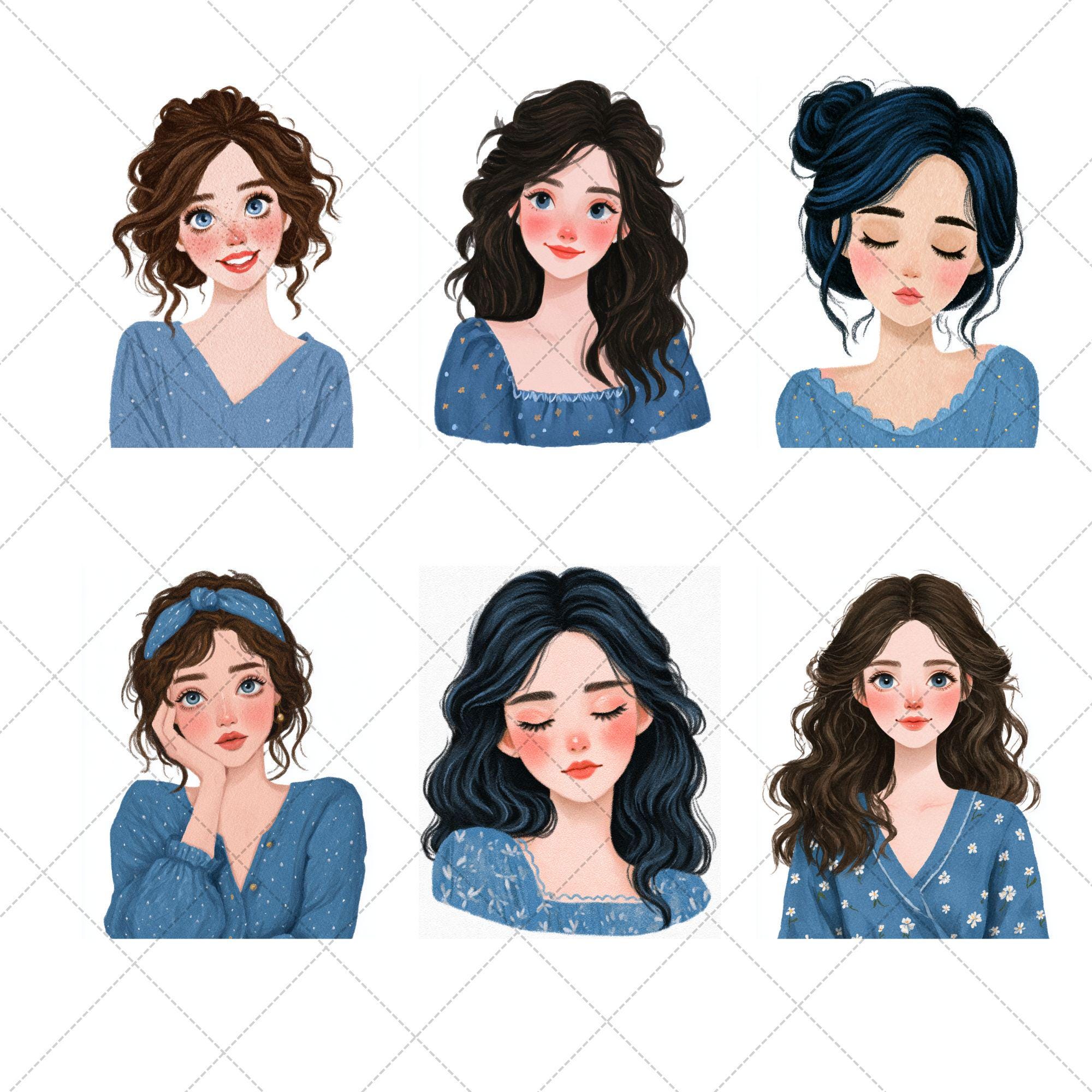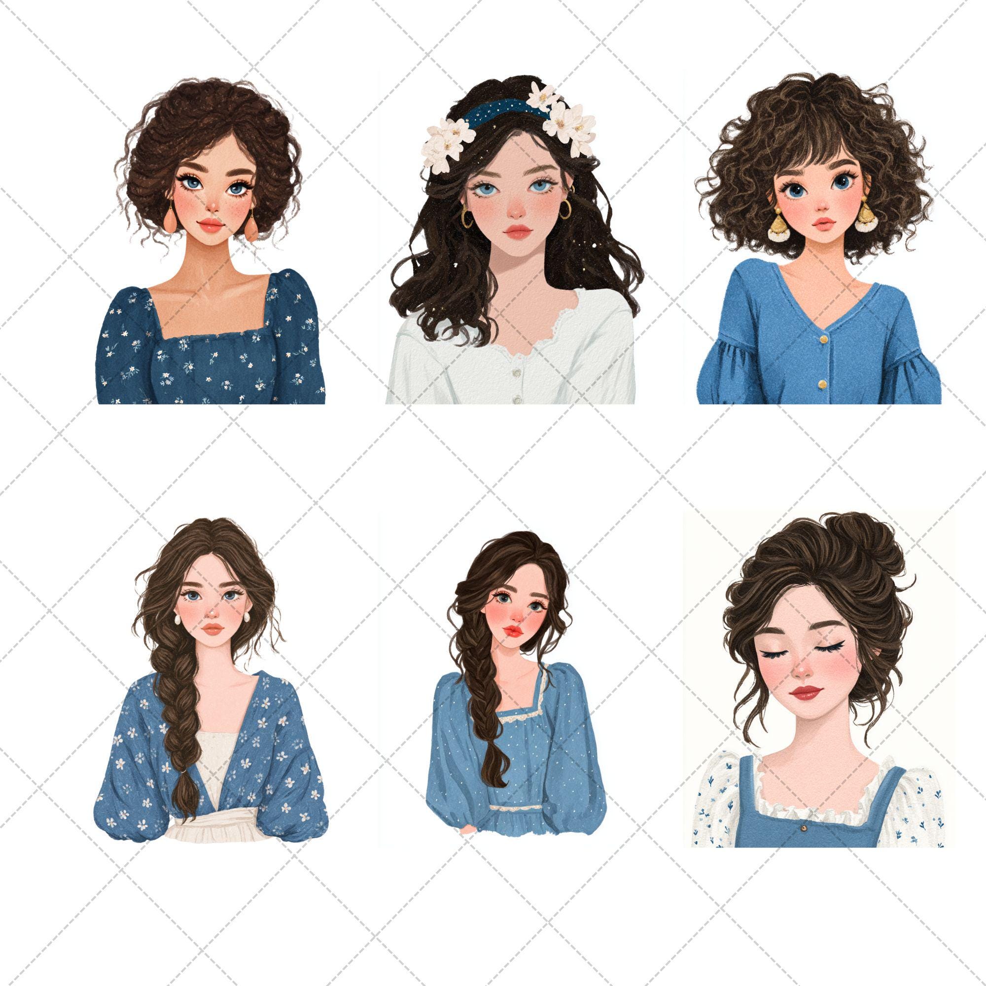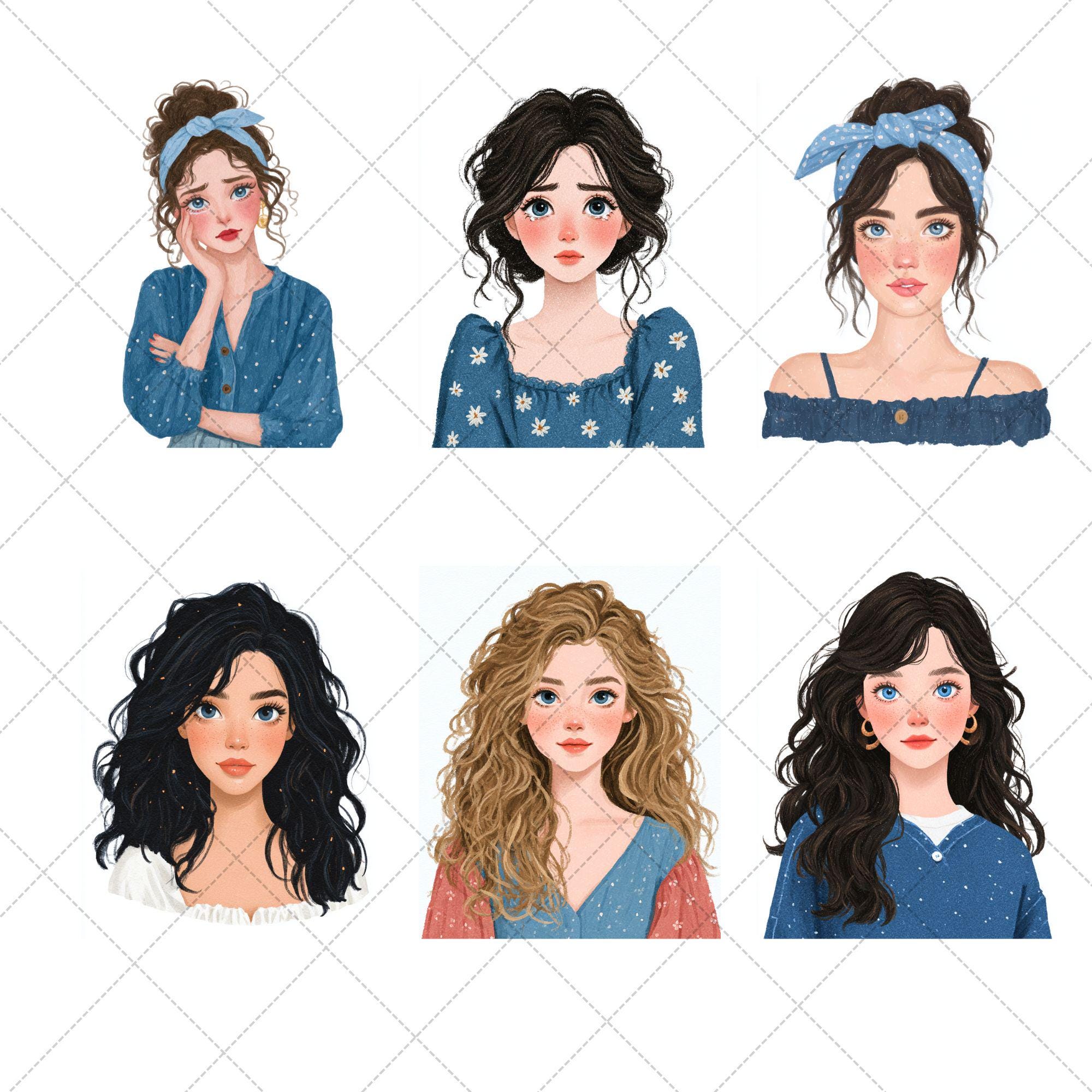 Hand-painted in a dreamy feminine style, these girl portraits are ideal for adding emotional warmth and depth to your creative work.