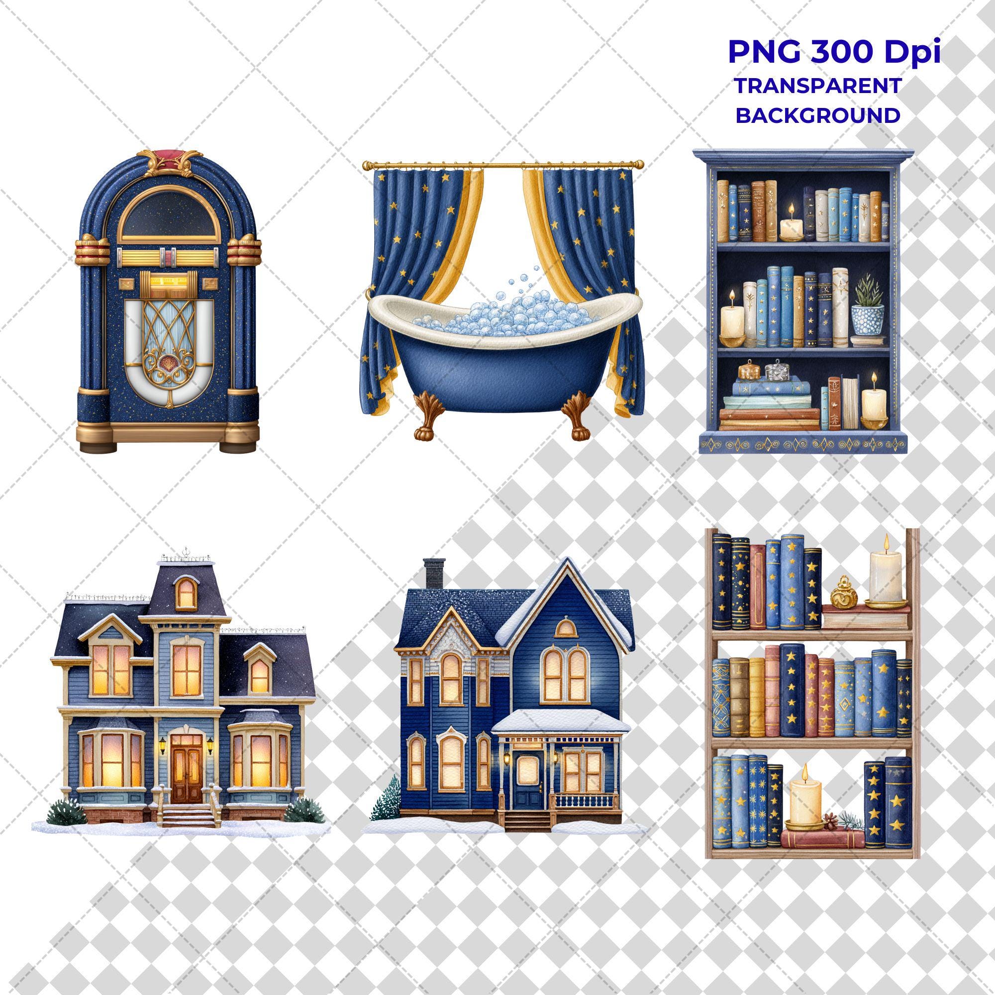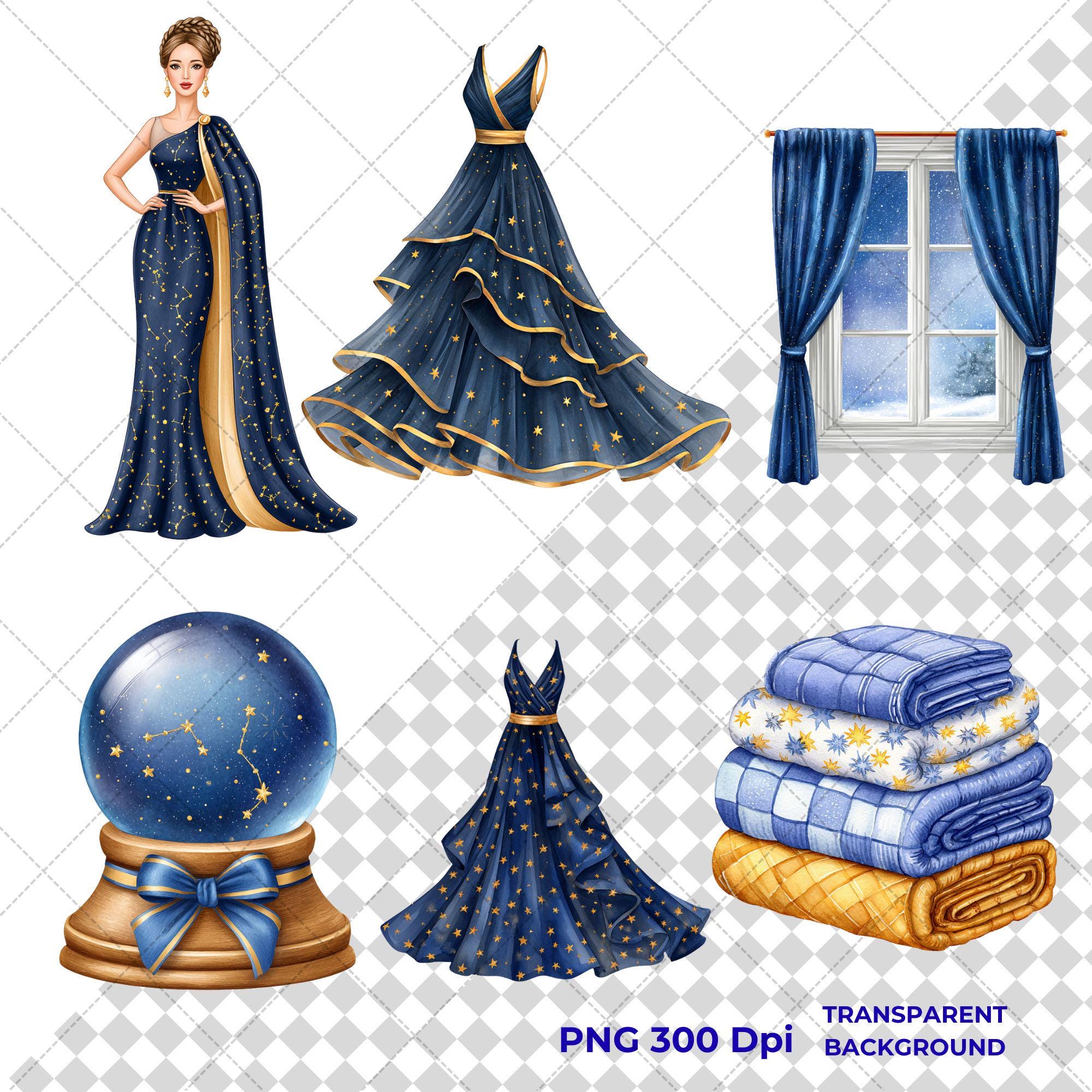 Painted in dreamy blue and gold watercolor, this set captures the warmth and sparkle of the holidays — elegant women, cozy moments, glowing candles, and starry-night details. Perfect for Christmas designs, greeting cards, planners, stickers, and fashion-themed projects.