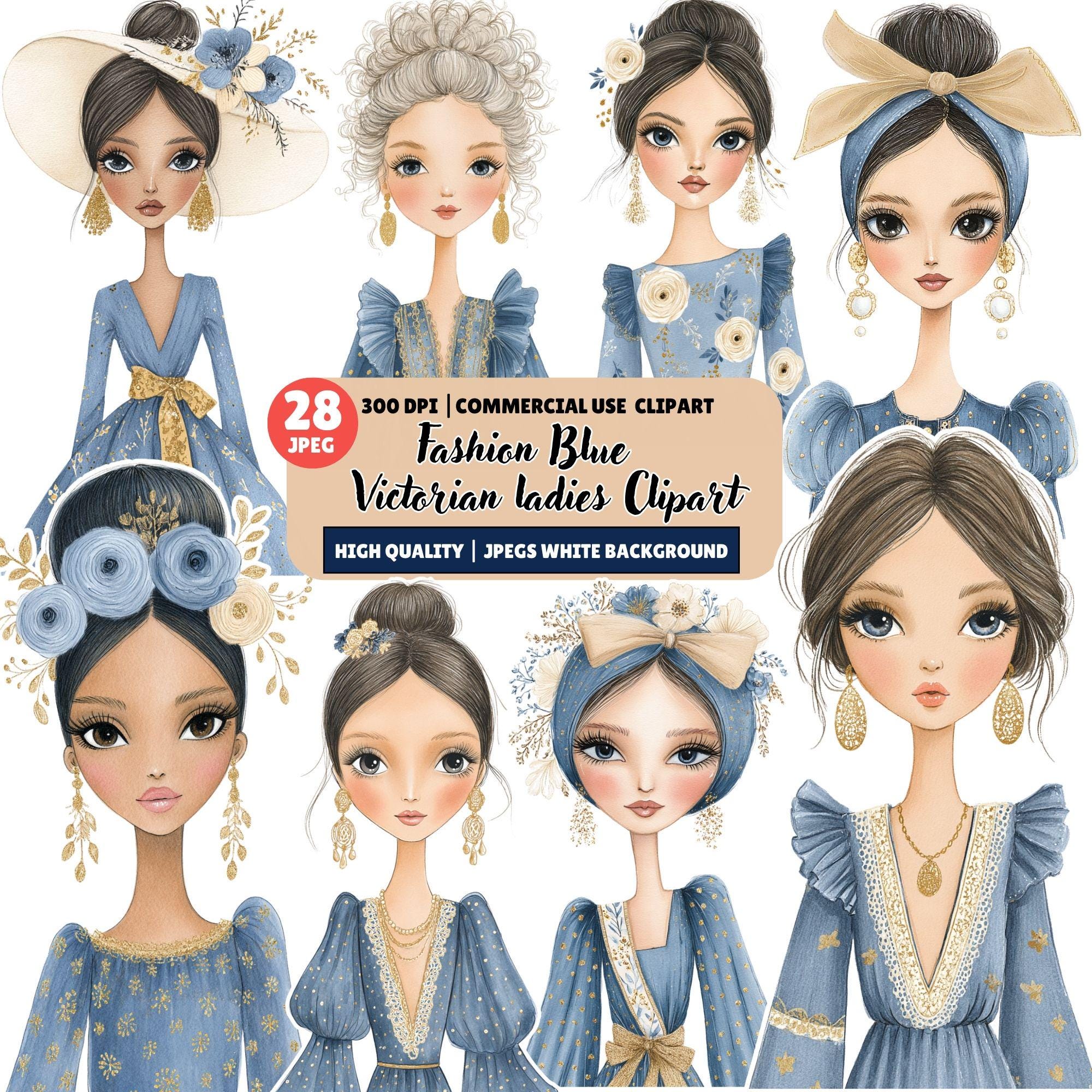 ⭐ ✨ Bring timeless elegance to your creative projects with this Fashion Blue Victorian Ladies Clipart set!