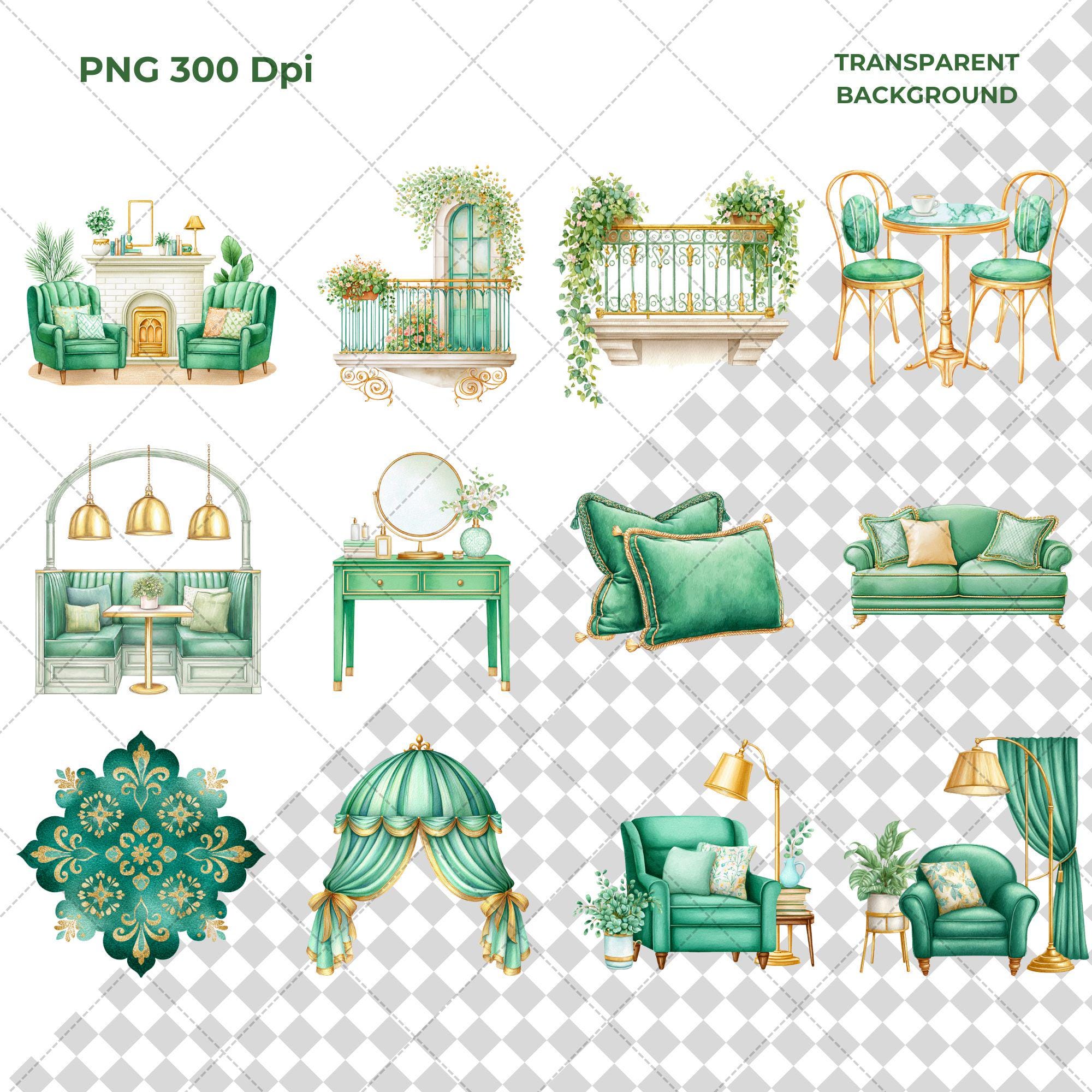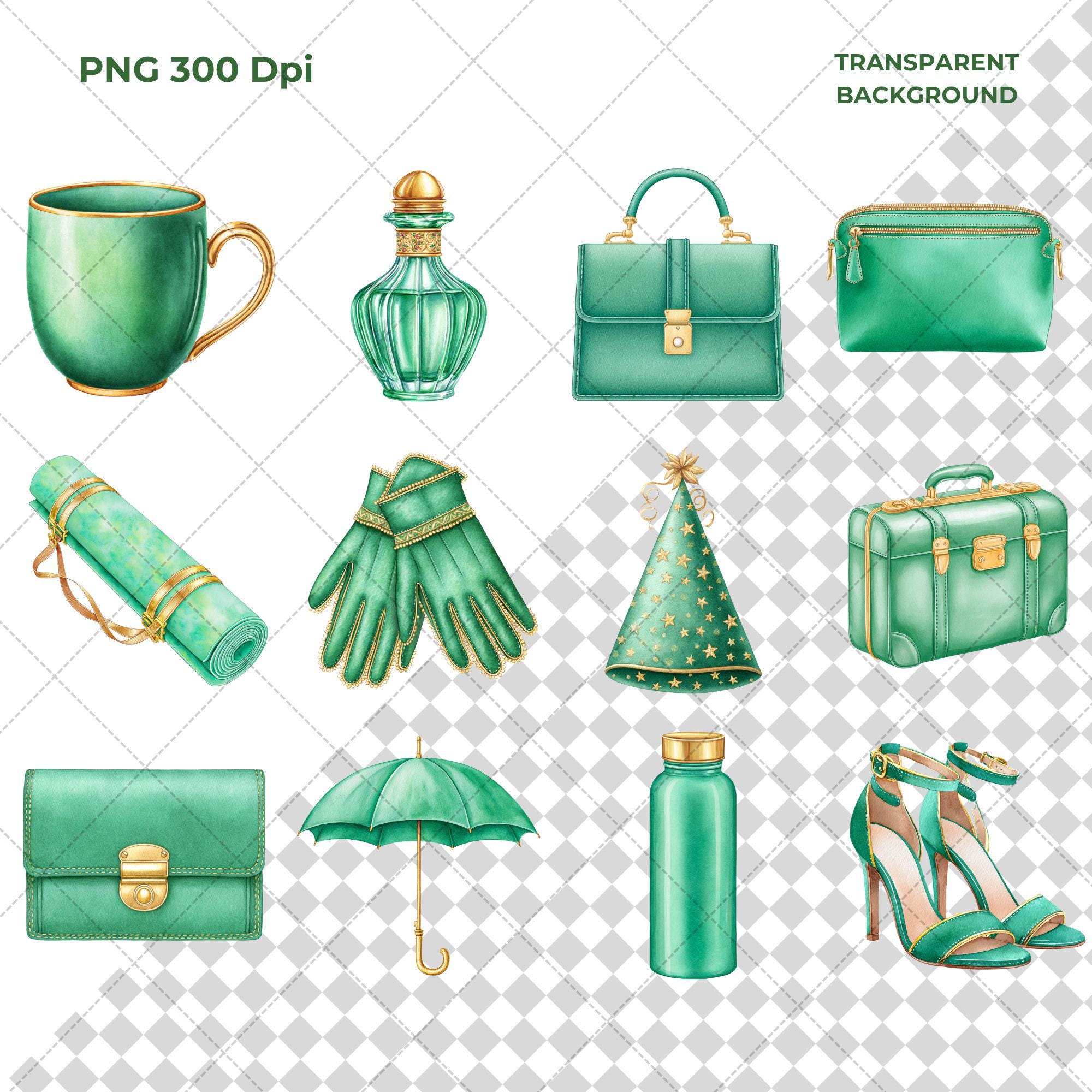 Emerald Green Fashion Clipart, Fashion Girl Illustration, Luxury Home Decor PNG, Green Aesthetic Graphics, Planner Girl Bundle, Watercolor Fashion Accessories.