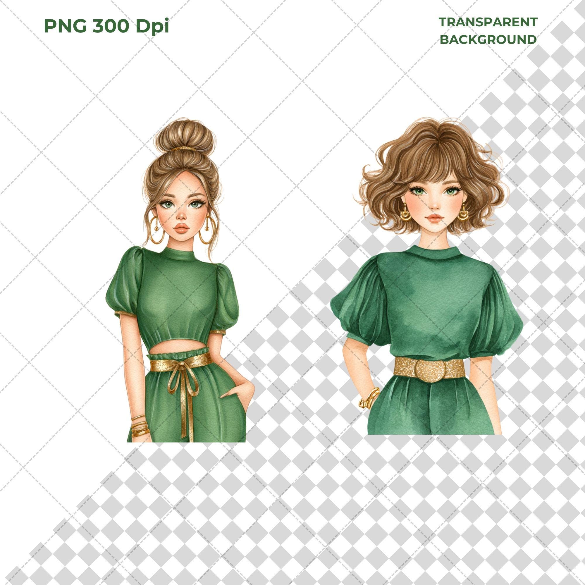 Emerald Green Fashion Clipart collection invites you to experience a lifestyle of luxury and glamour. Inspired by the richness of emerald gemstones and gold accents, this bundle features chic fashionistas, lush interior decor, and stylish accessories. Whether you are designing a "Girl Boss" vision board, a fashion blog header, or chic planner stickers, these illustrations add an instant upgrade of class and confidence to your work.