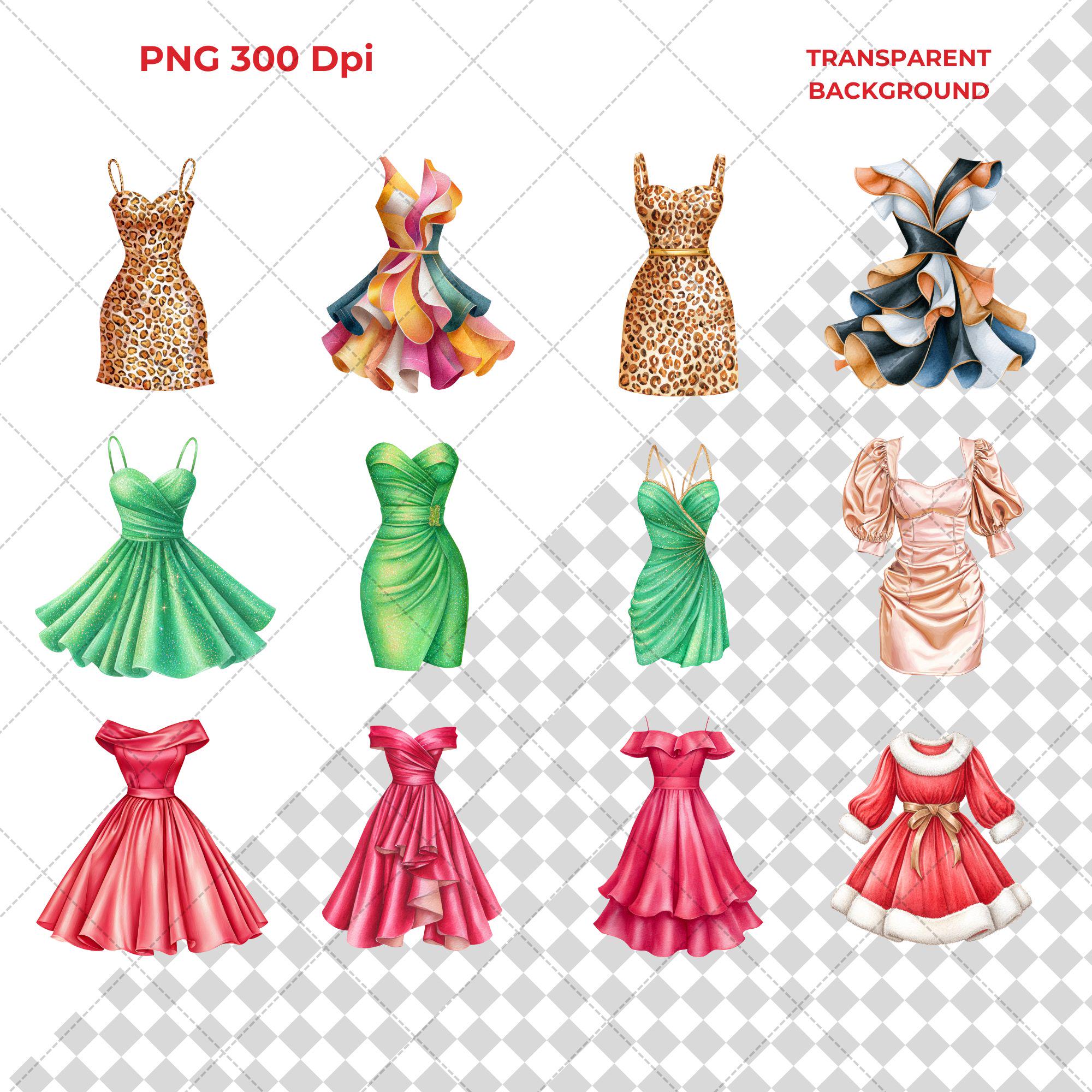 Party Dress Clipart mega bundle is a fashion lover's paradise, featuring a breathtaking array of watercolor gowns for every occasion. From sparkling prom dresses and elegant wedding gowns to fierce leopard prints and cozy Christmas couture, this collection has it all. Whether you are designing wedding invitations, fashion-themed planner stickers, or sublimating stylish tote bags, these illustrations add instant glamour and sophistication to your work.