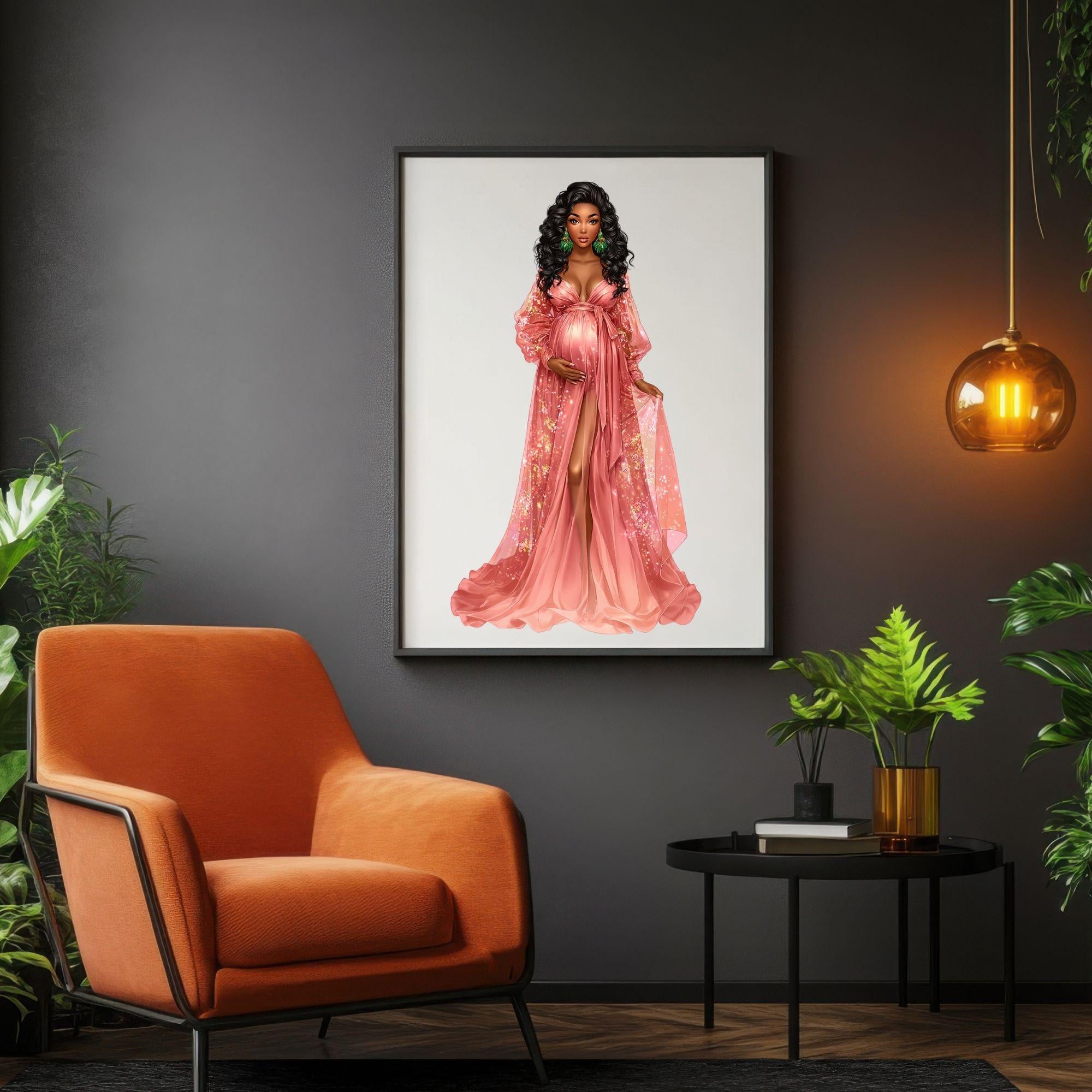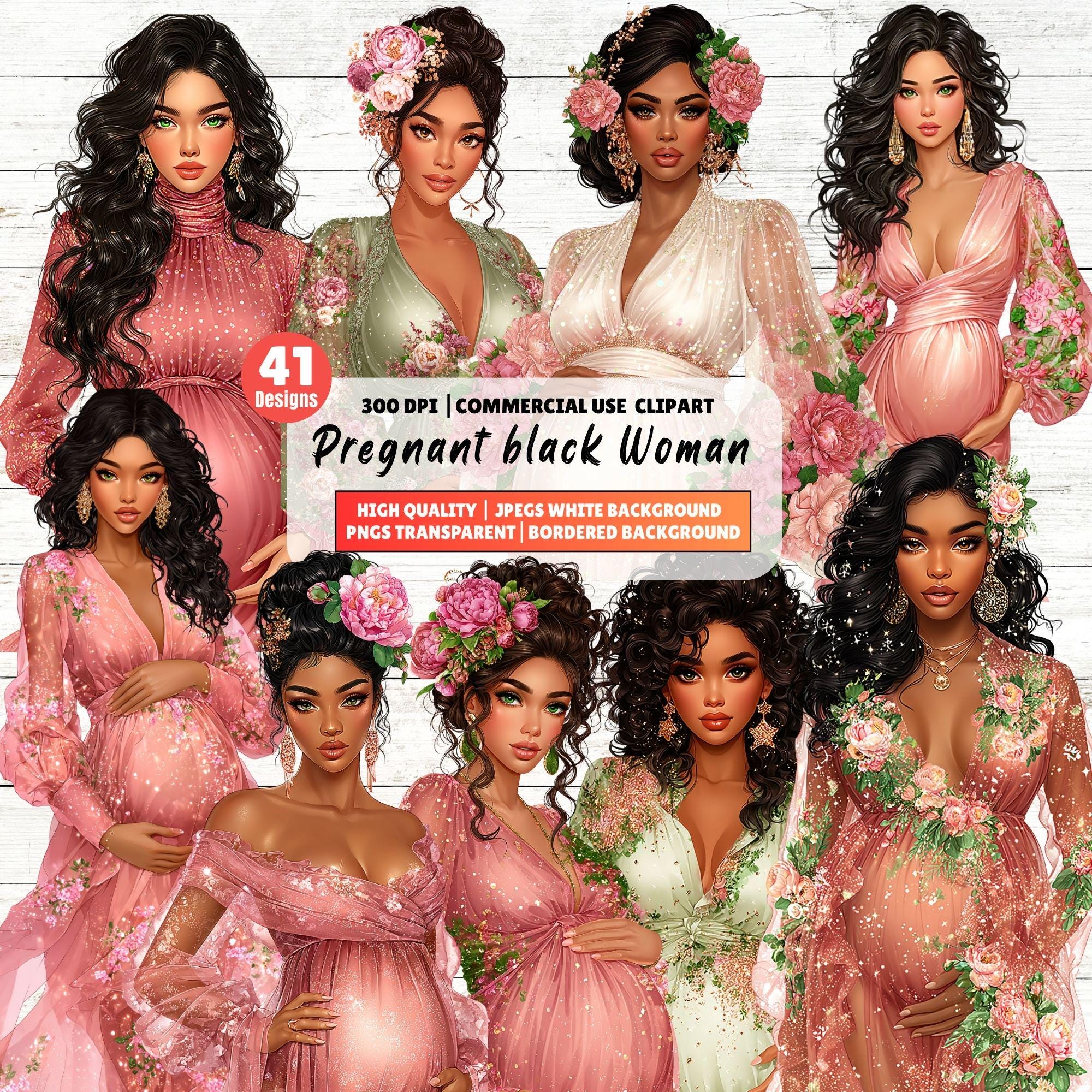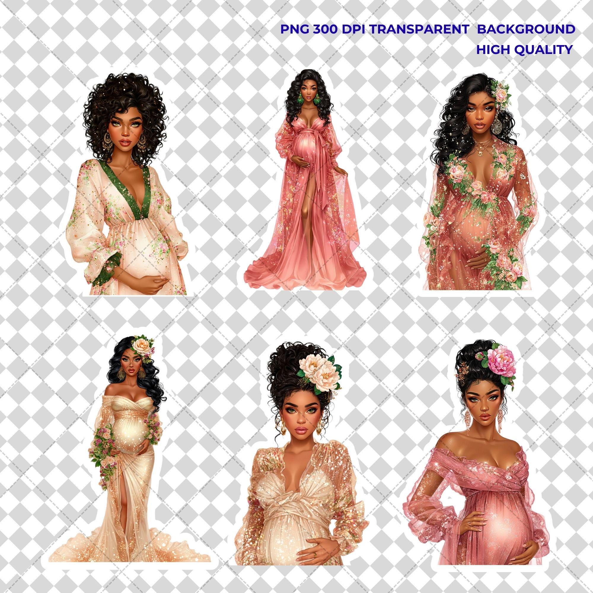 Black Woman Clipart, Maternity Art, Pregnancy Illustration, Afro Mom, Digital Download)