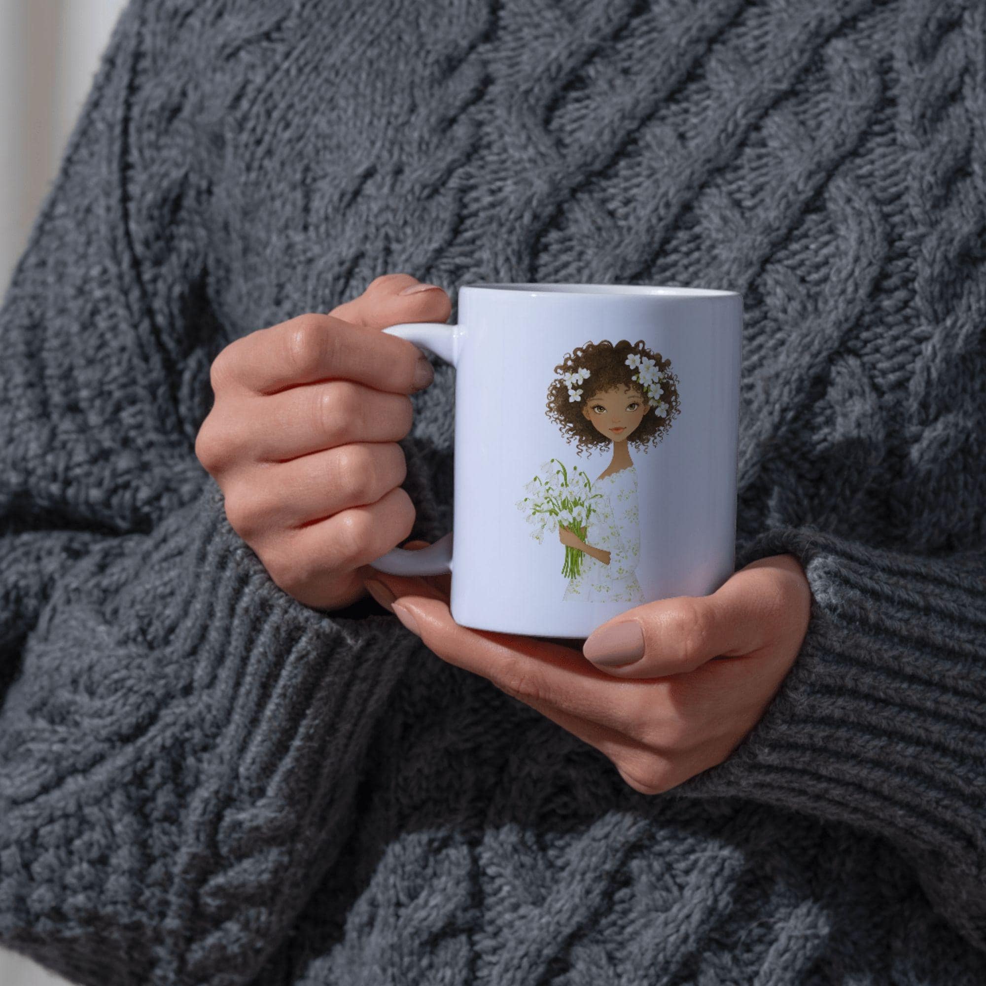 Spring clipart, Snowdrop flower illustration, African American girl clipart, Cute black girl png, Floral sublimation designs, Springtime graphics, Digital scrapbooking elements, Commercial use clipart, Watercolor flower art.